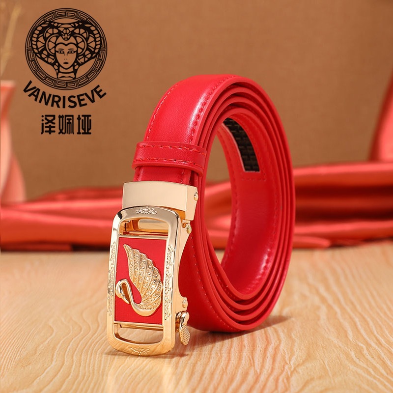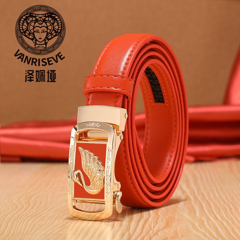[보내 테이프] 여자 벨트 가죽 자동 버클 얇은 벨트 패션 숙녀 바지 벨트