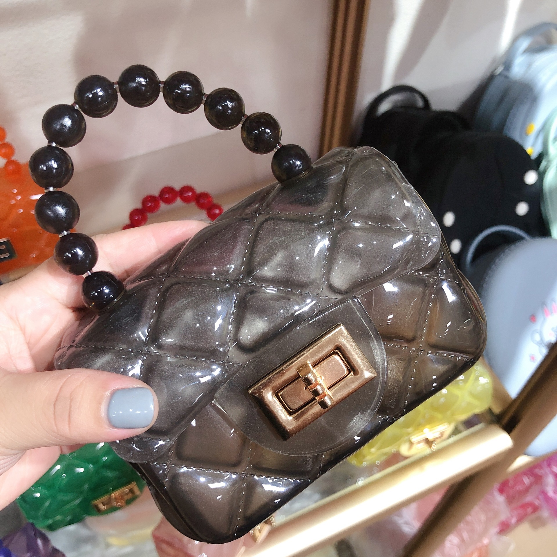 2025 새로운 한국 스타일 유행 패션 샤넬 스타일 가방 모든 경기 다이아몬드 격자 체인 투명 젤리 가방 진주 크로스 바디 백