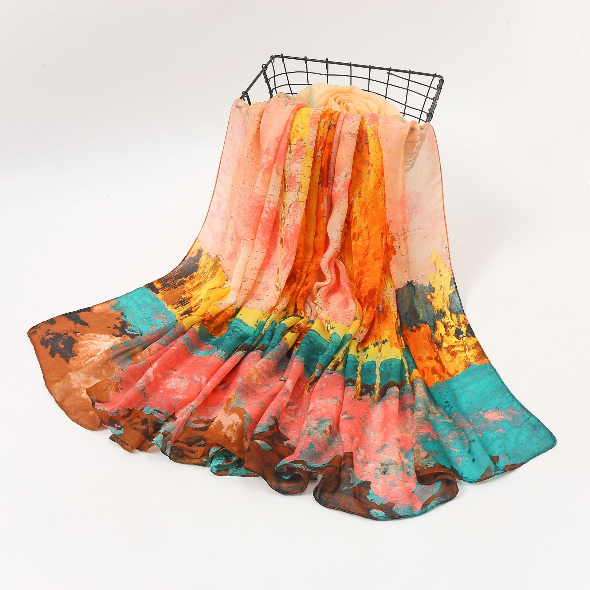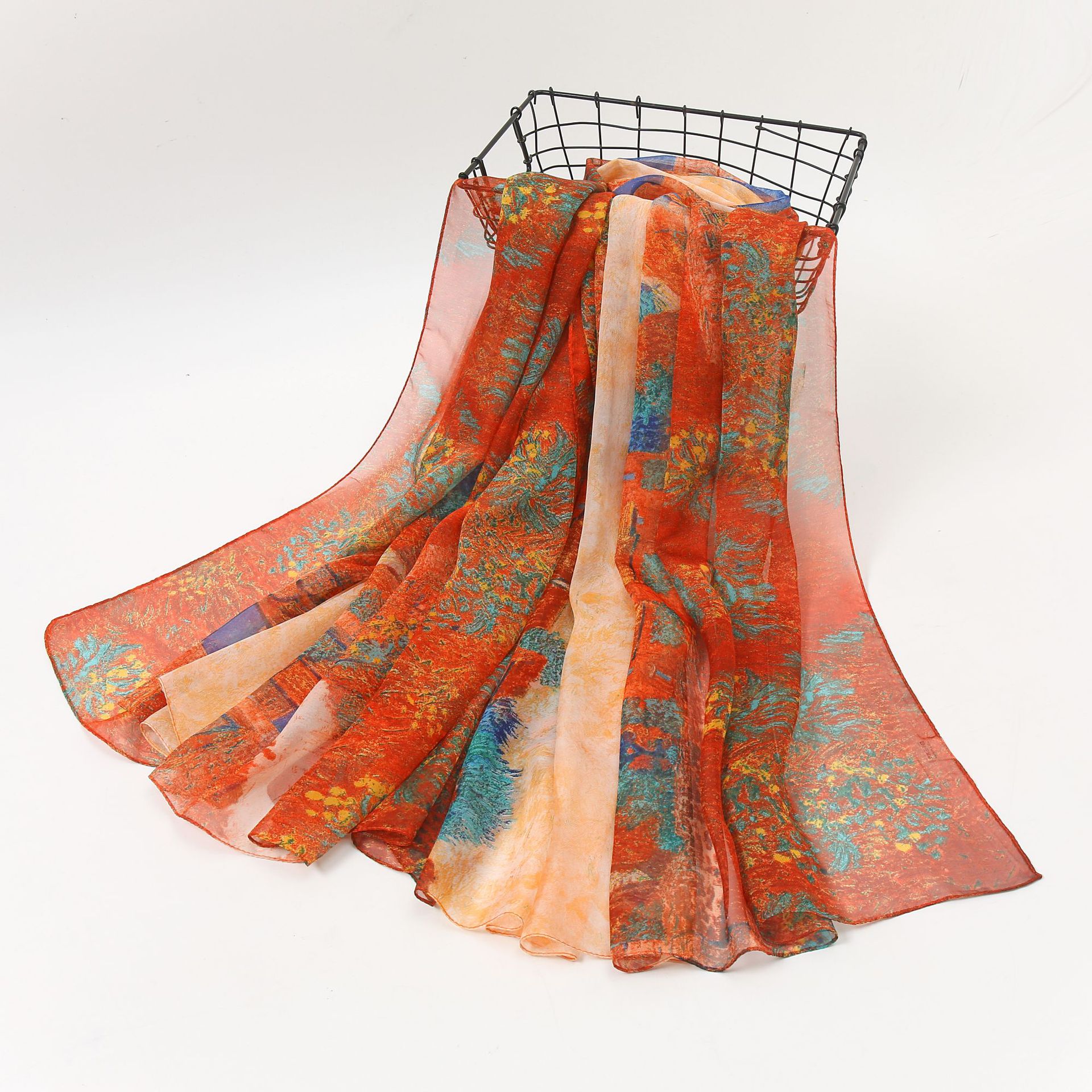 Gaohe 간단한 은행 나무 잎 식물 인쇄 스카프 여성 여행 태양 보호 차양 스카프 해변 목도리스토어 가기