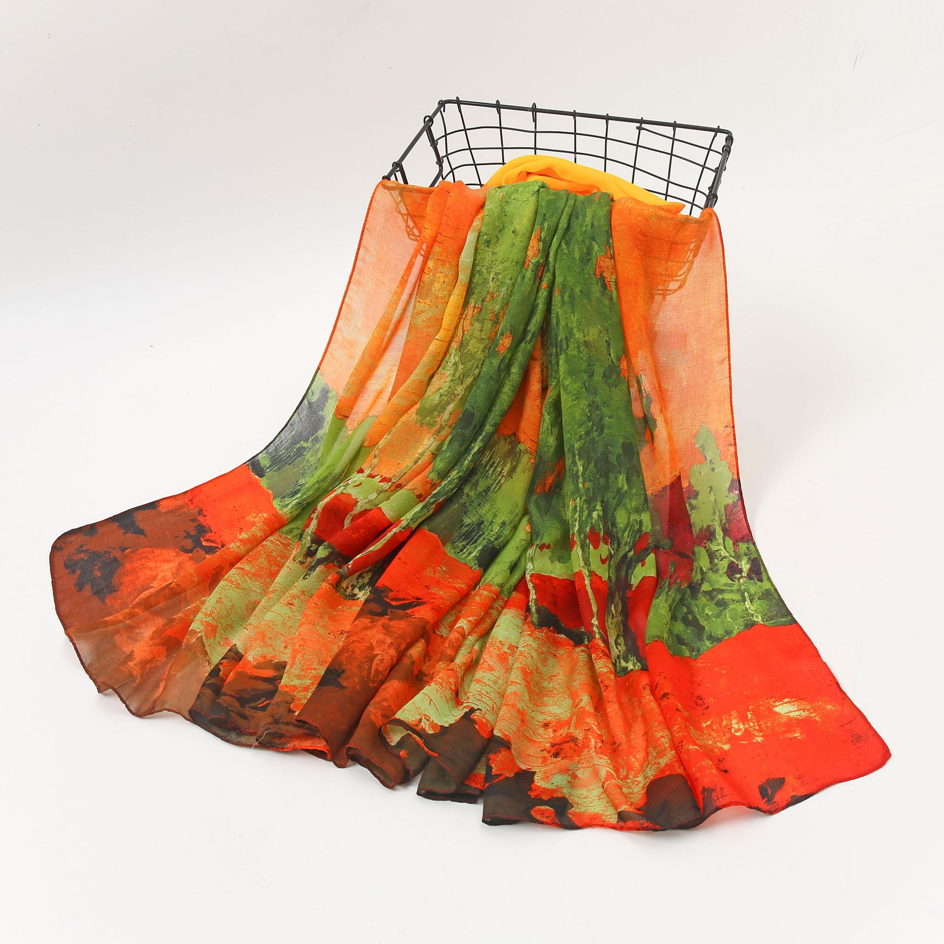 Gaohe 간단한 은행 나무 잎 식물 인쇄 스카프 여성 여행 태양 보호 차양 스카프 해변 목도리