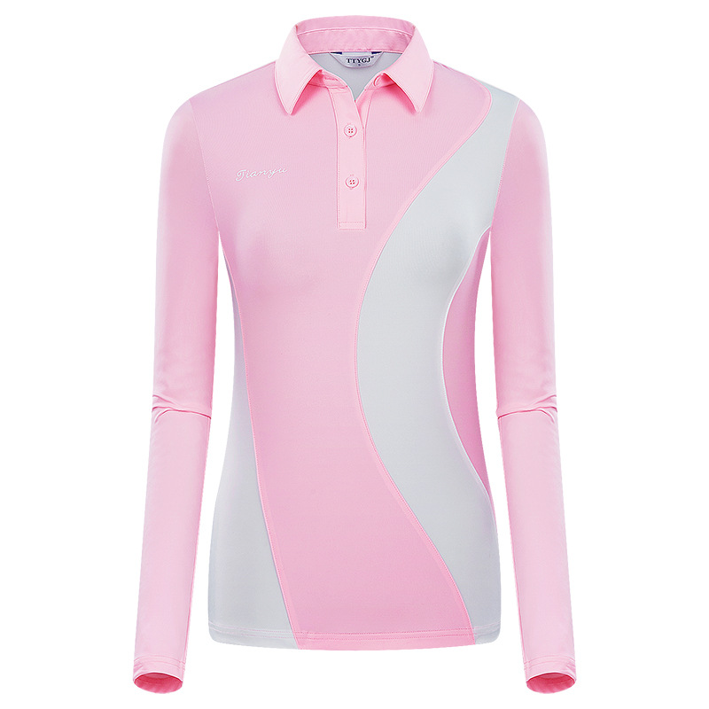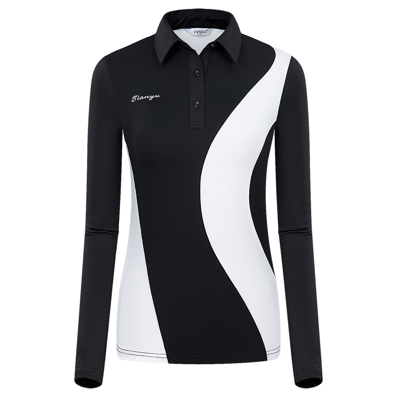 골프 봄 여름 의류 여성용 긴팔 티셔츠 폴로 셔츠 태양 방지 속건 대비 컬러 슬리밍 스포츠 볼 탑