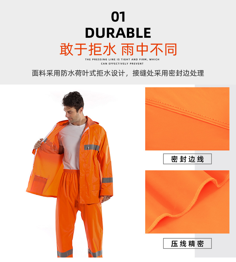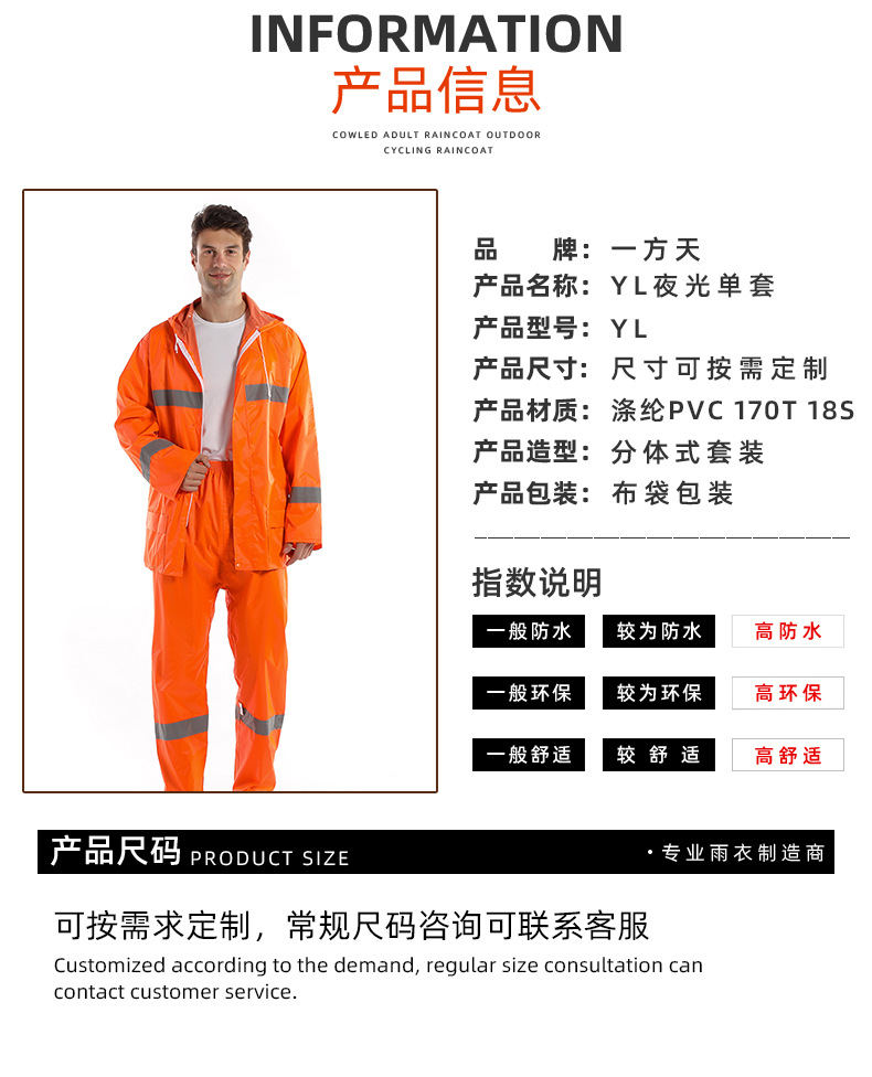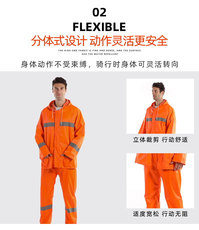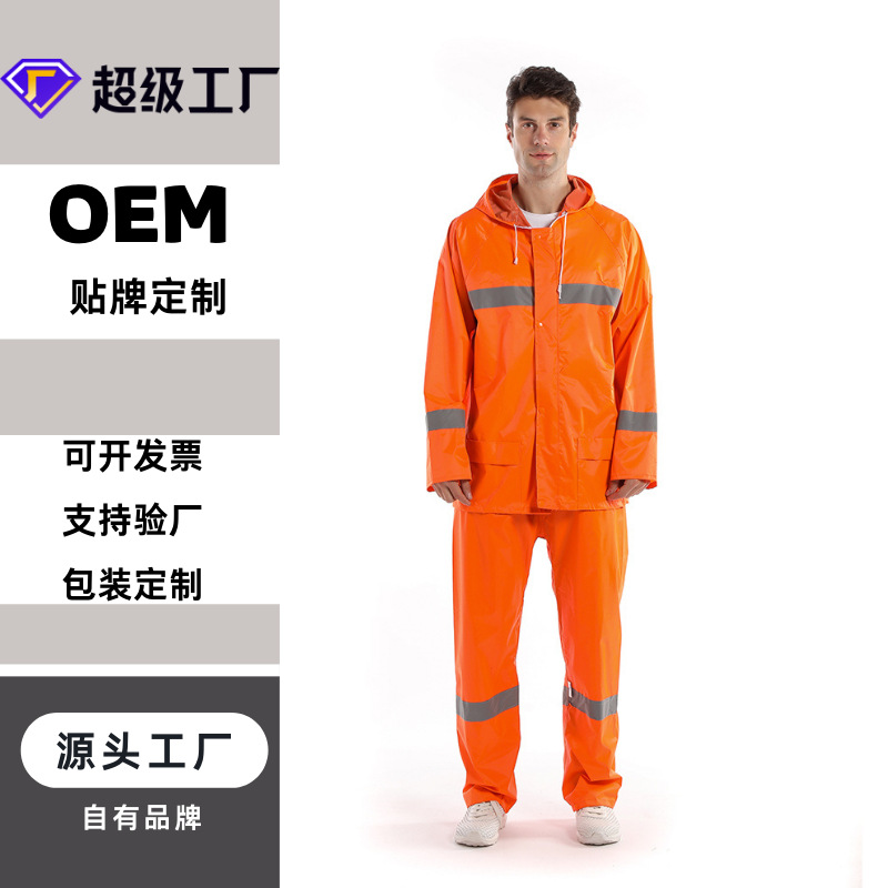 170T18S 폴리에스터 PVC 노동 보호 비옷 세트 야외 방수 작업복 분할 반사 맞춤형 경량