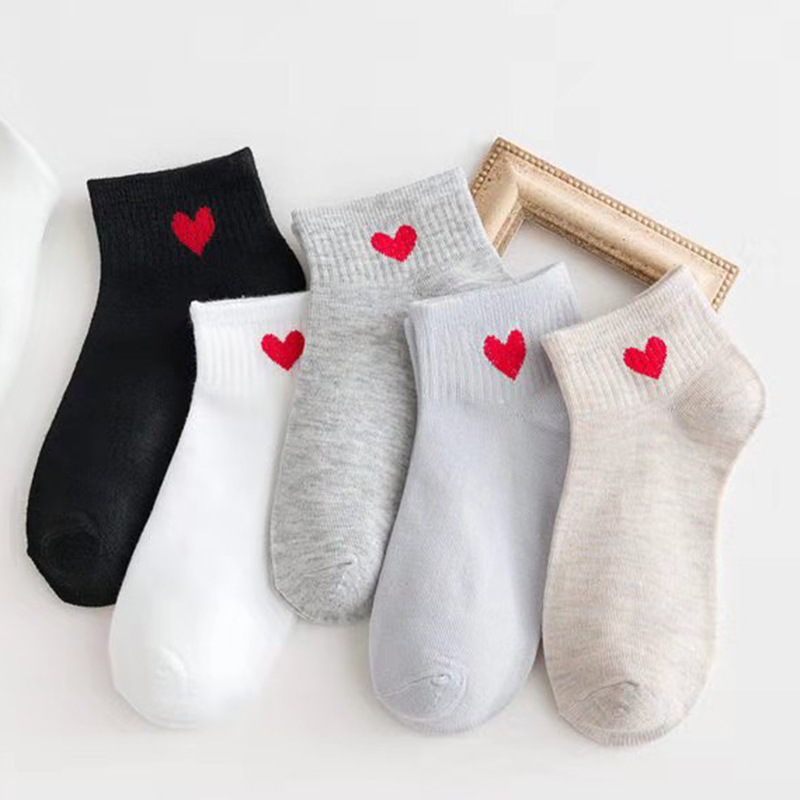 여성용 봄 여름 솔리드 컬러 러브 양말, 트렌디하고 귀여운 학생 양말, 로우컷 얕은 보트 양말, 스포츠 미드 종아리 양말 도매