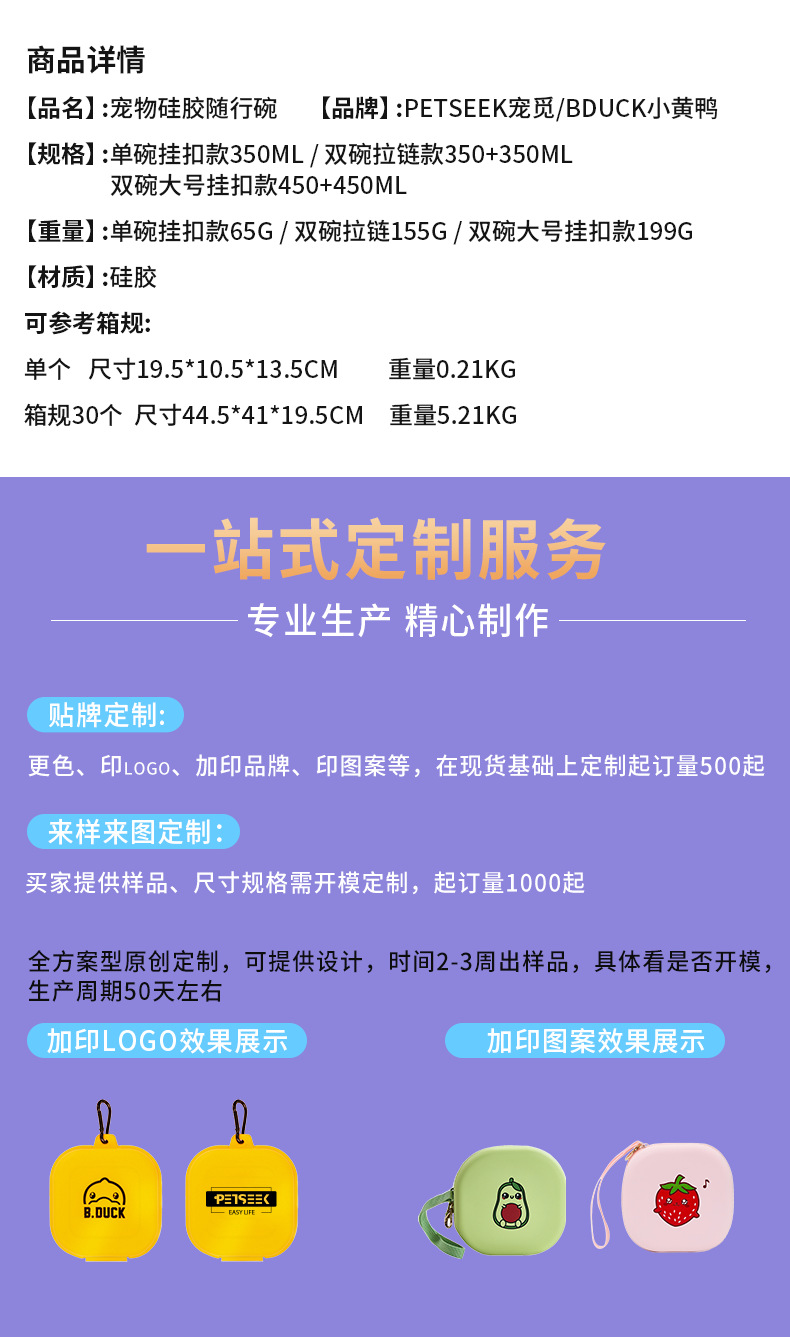 • 보라색 작은 노란 오리 대형 일체형 이중 그릇 450+450ML
