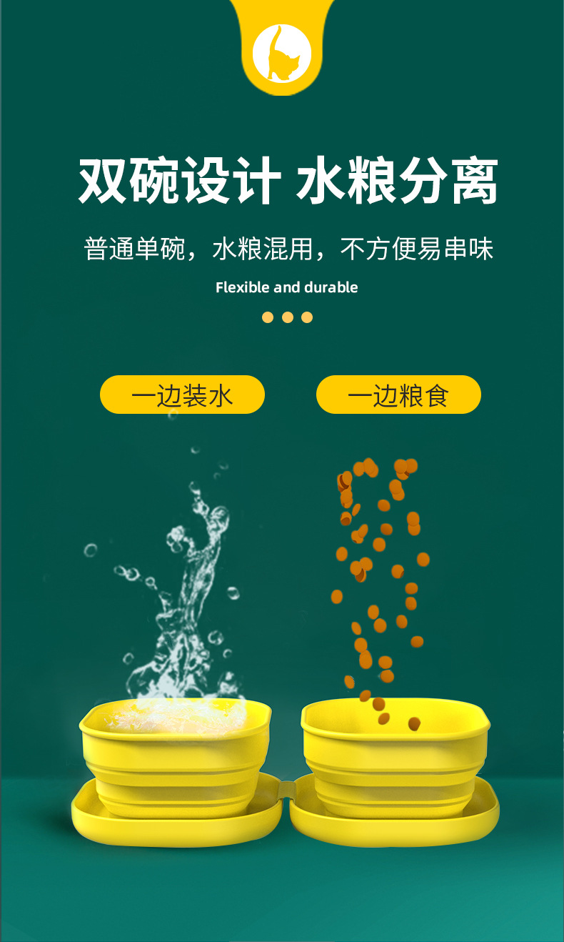 국경을 넘는 반려동물 이동식 그릇, 야외 휴대용 고양이 그릇, 이중 그릇, 강아지 그릇, 급식 그릇, 물과 사료 그릇, 외출용 실리콘 접이식 그릇