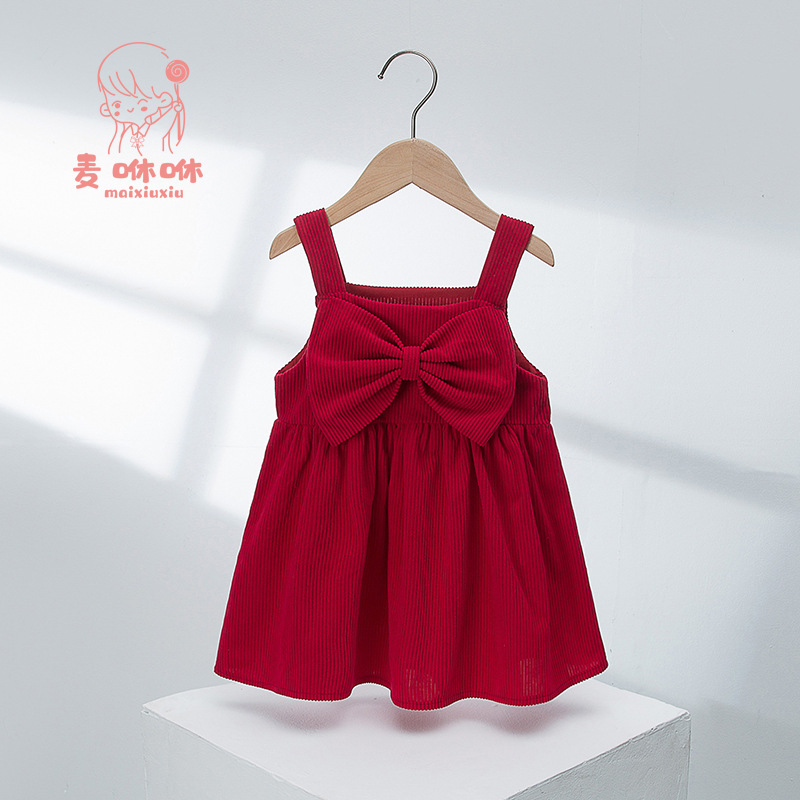 마이 퓨 2021 소녀 코듀로이 원피스 가을과 겨울 새로운 한국 아기 공주 치마 어린이 치마스토어 가기
