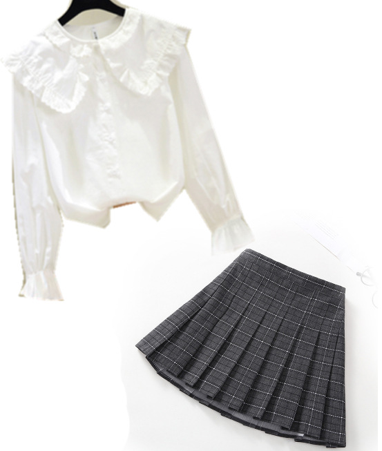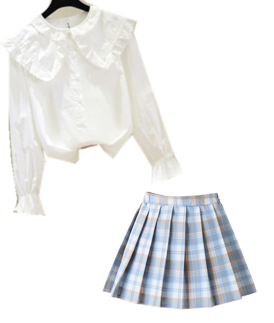 • 쉬폰 작은 레이스 + 하늘색 격자 스커트