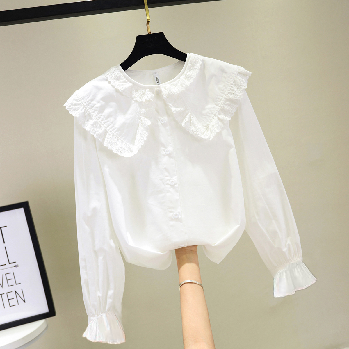 소녀의 셔츠 작은 소녀의 흰색 셔츠 긴 소매 면 외국 스타일 어린이 봄과 가을 탑 한국 스타일 학생 아동 의류스토어 가기