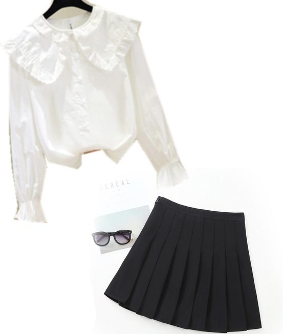 • 쉬폰 작은 레이스 + 검은 치마