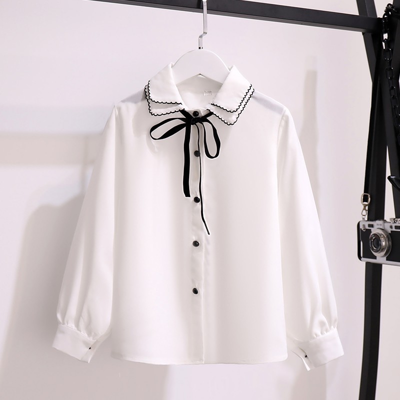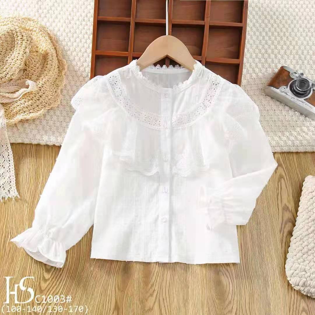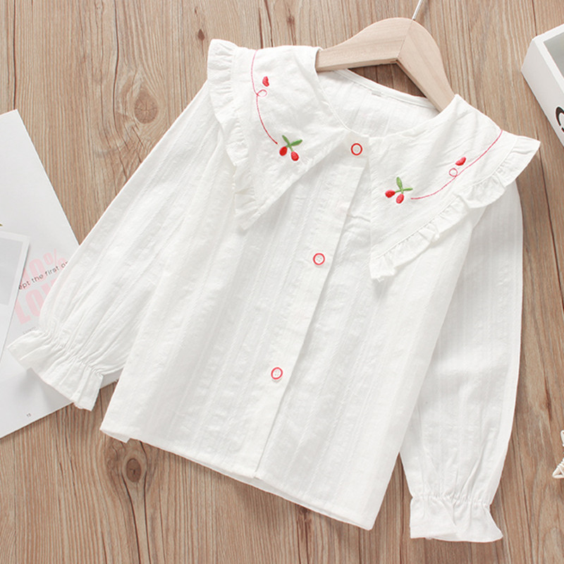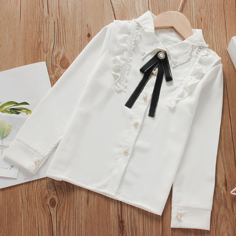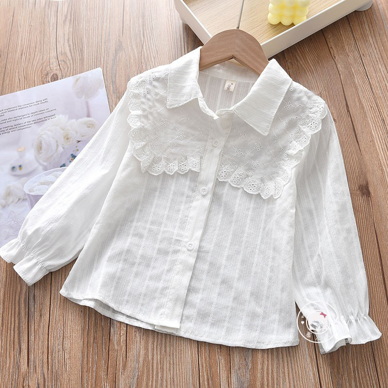 여아 셔츠 2022 새로운 한국 유행 아동복 흰색 셔츠 서양 스타일 봄과 가을 긴 소매 탑