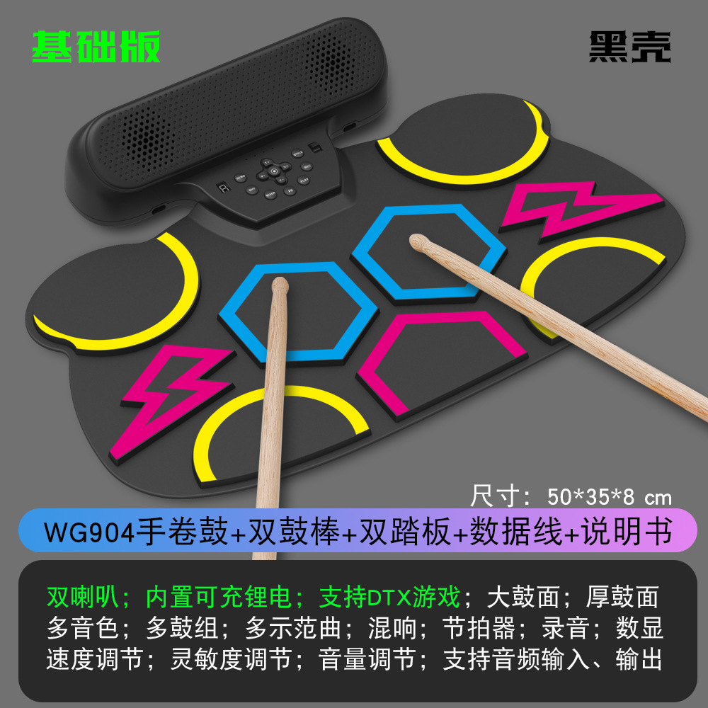 WG904便携式电子鼓(大鼓面、内置双喇叭、可充电、支持DTX游戏)