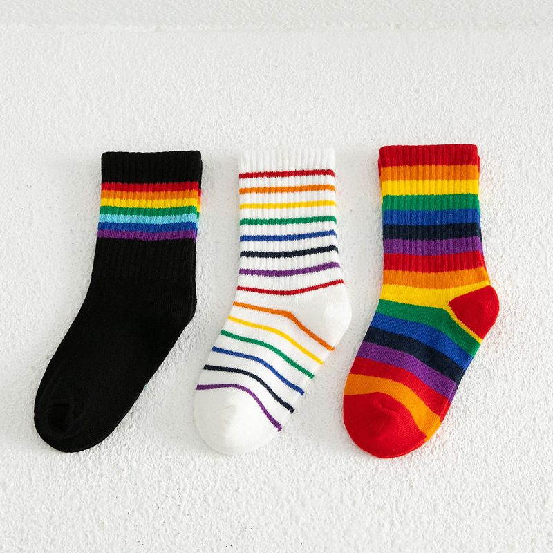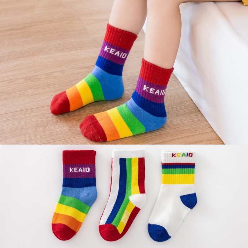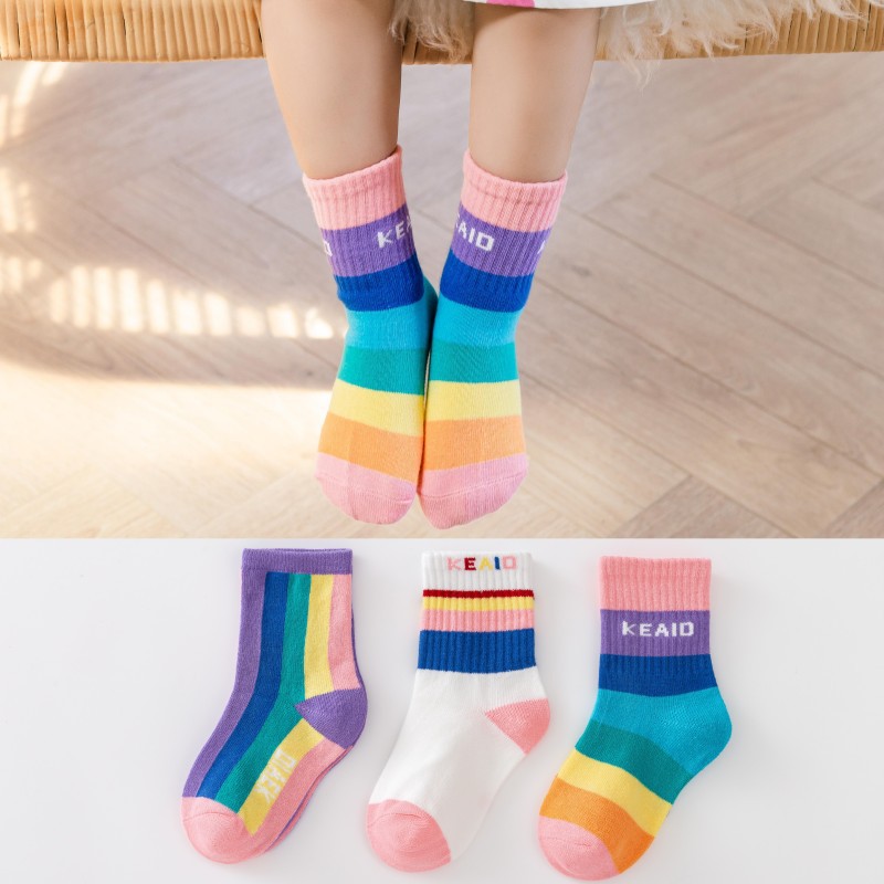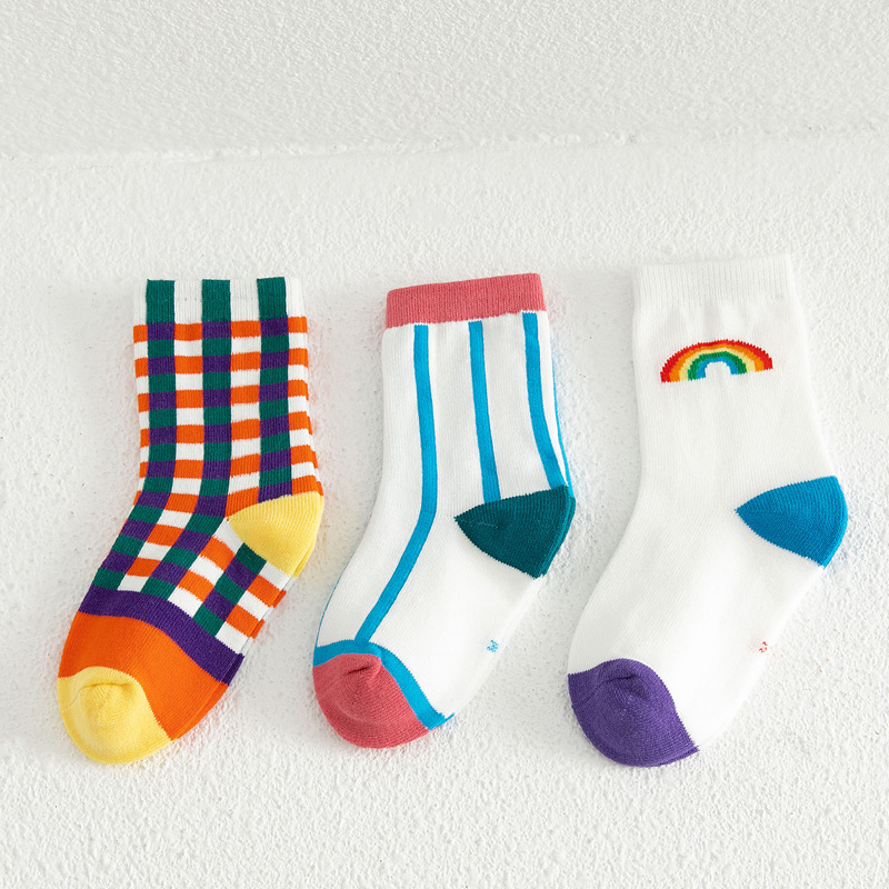 어린이 양말 봄과 가을 중간 배럴 일본 무지개 거리 소년 소녀 아기 면 양말 얇은 줄무늬 공장 어린이 양말스토어 가기