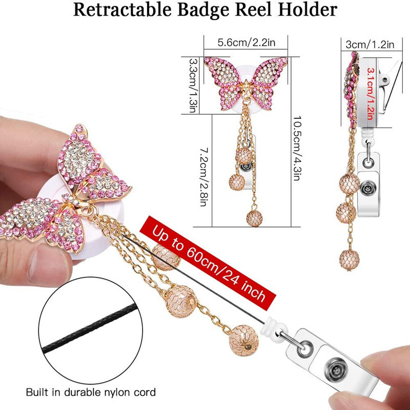 아마존 재고 나비 술 금속 쉬운 풀업 버클 배지 다이아몬드 상감 레트로 라운드 와이어 로프 ID 버클스토어 가기