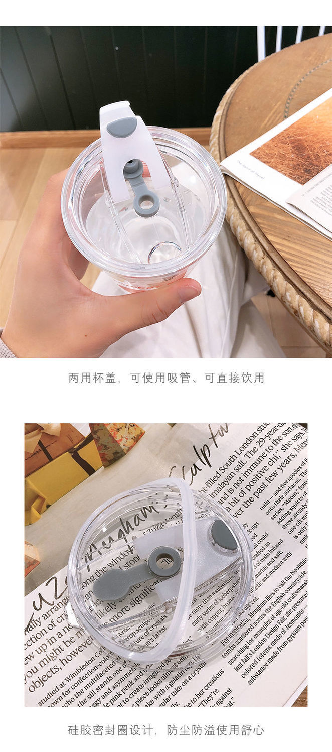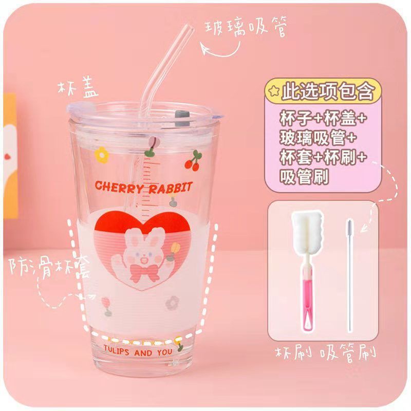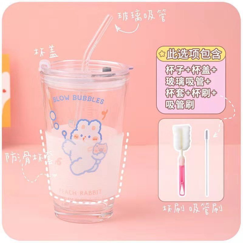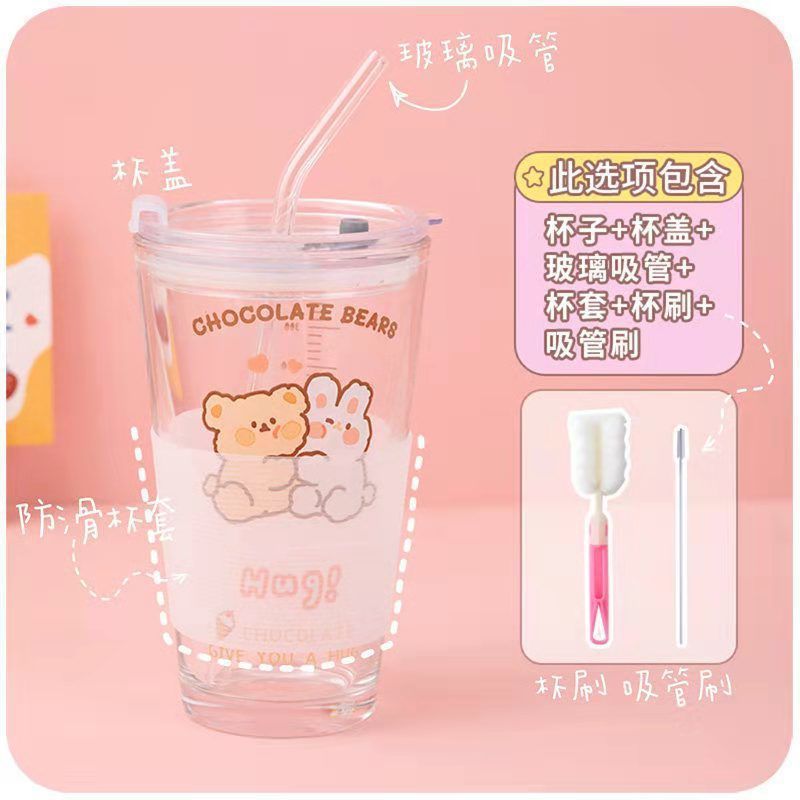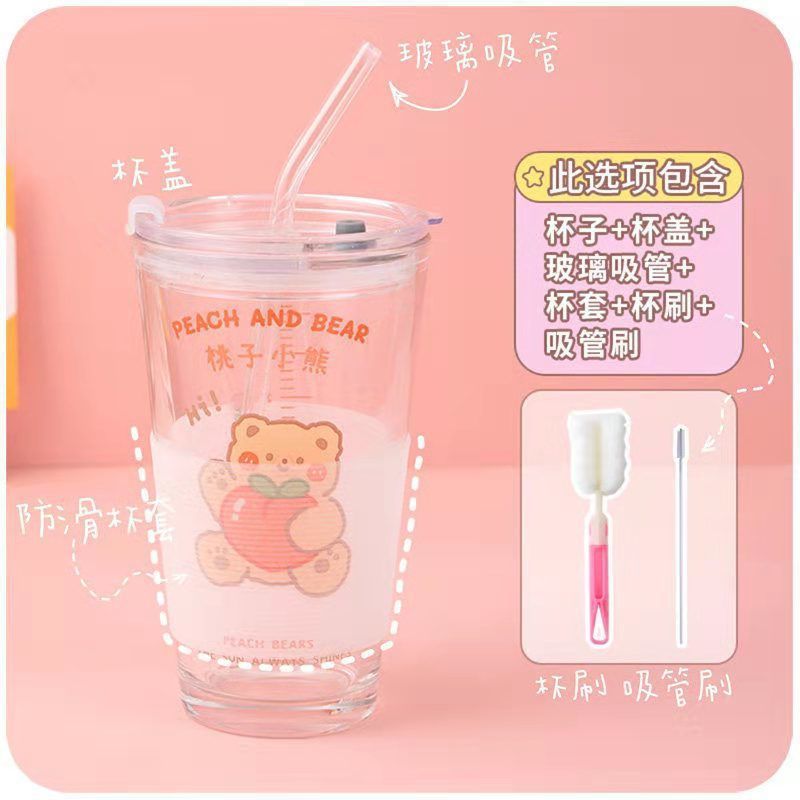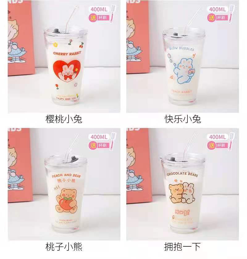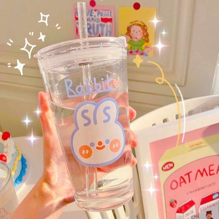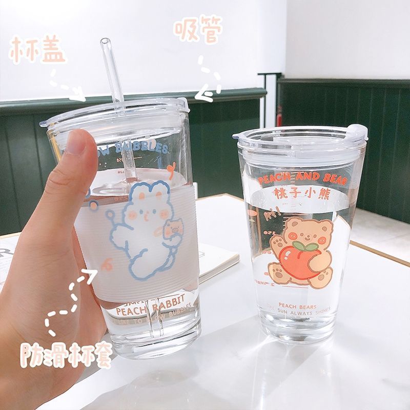 스타일 뚜껑과 빨대 소녀의 여름 물 컵 가정용 우유 아침 식사 휴대용 우유 차 컵과 귀여운 유리스토어 가기