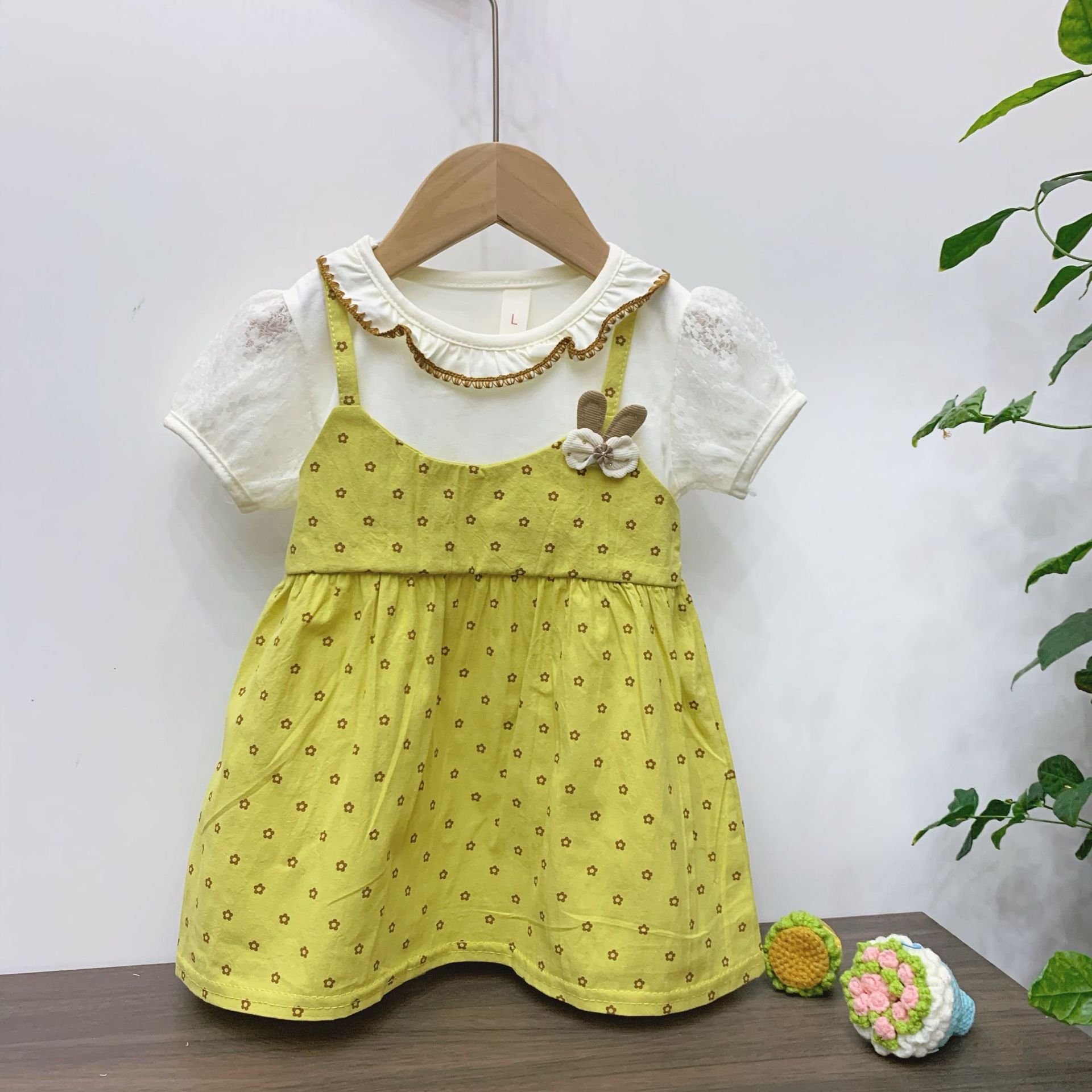 여자 여름 드레스 2025 대외 무역 어린이 드레스 여름 공주 드레스 어린이 1-3 세 여자 반팔 스커트