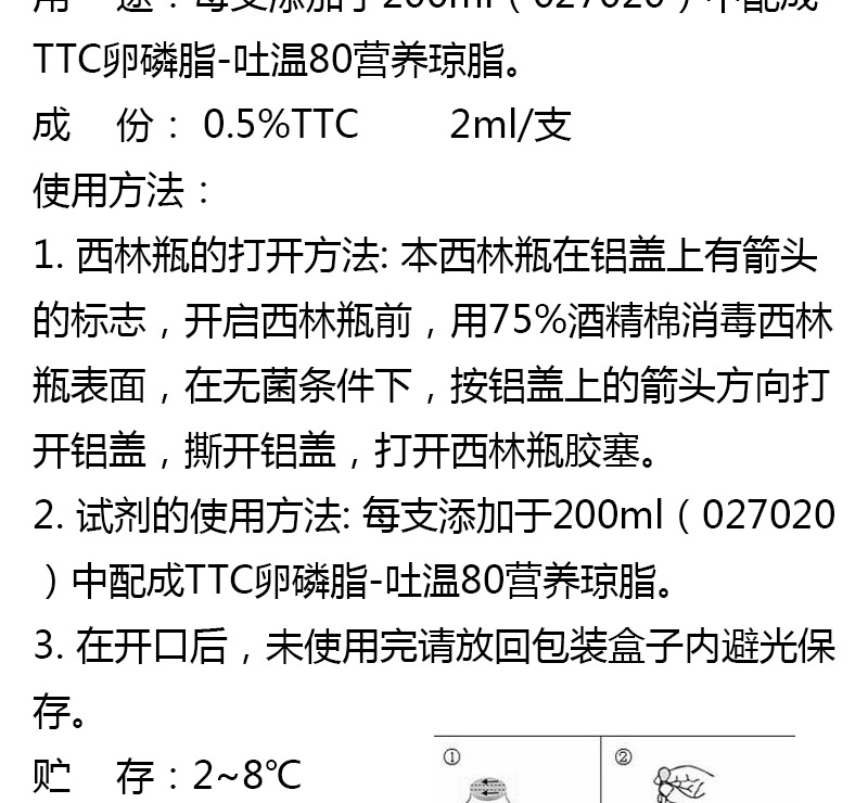 0.5 멸균 TTC 용액 2ml × 10 PC/상자 레시틴 트윈 80 일치하는 시약 huankai 029226