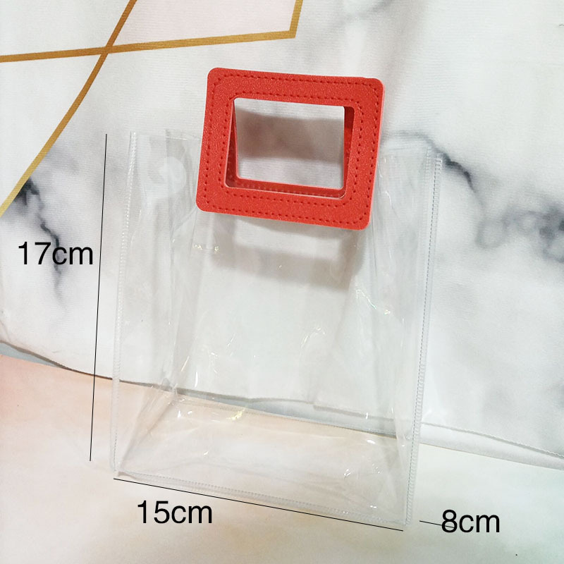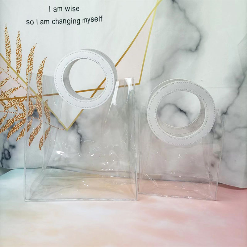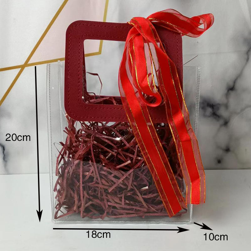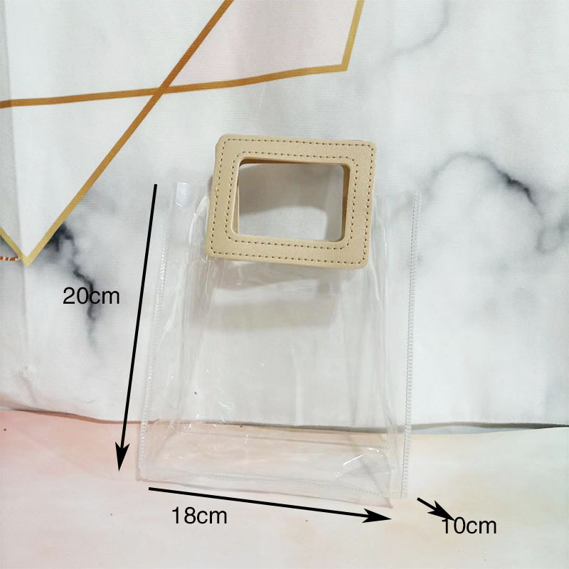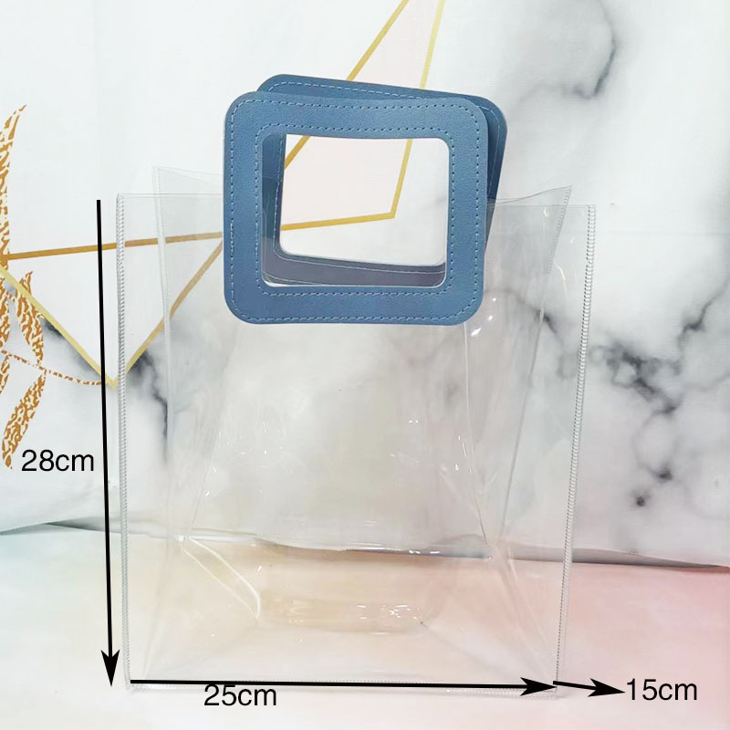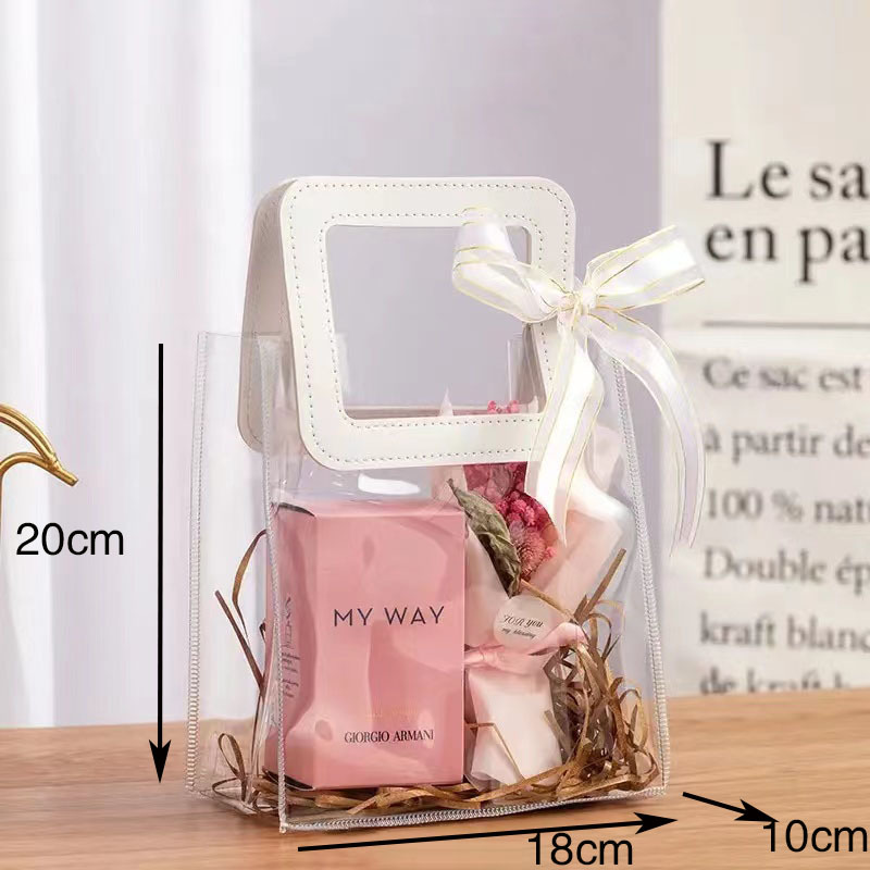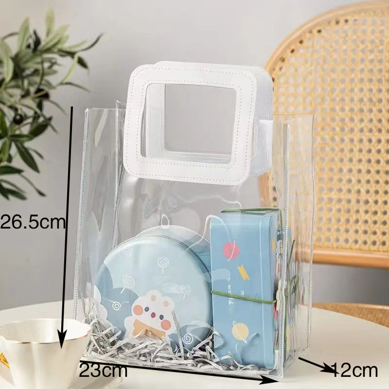 In 손 선물 토트 백 투명 가방 플라스틱 핸드백 선물 가방 의류 포장 손 선물 가방 PVC 가방