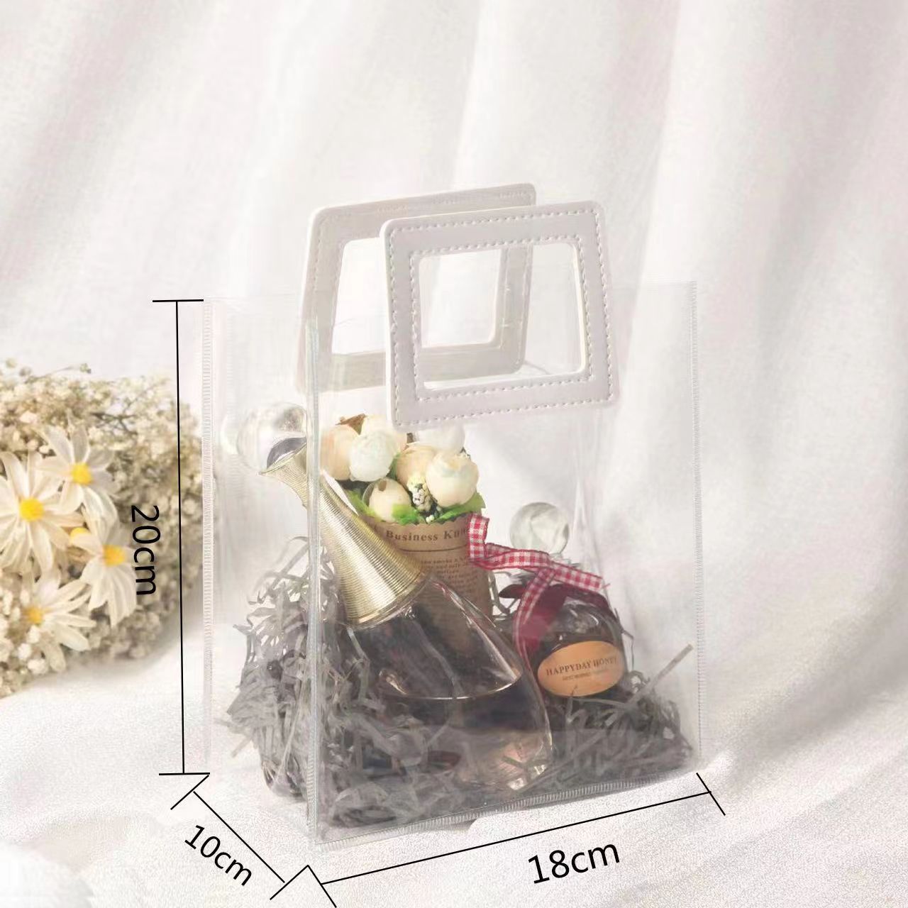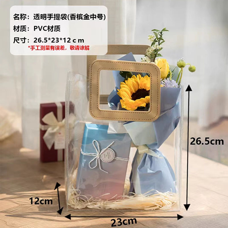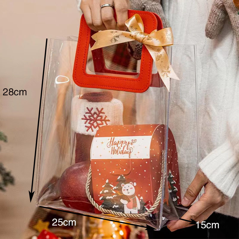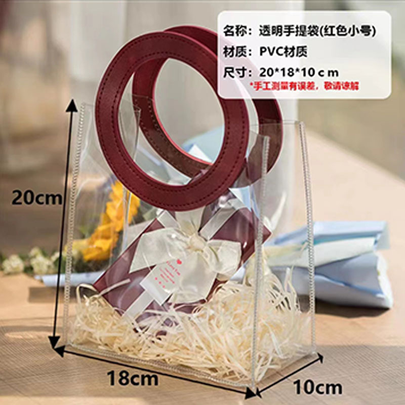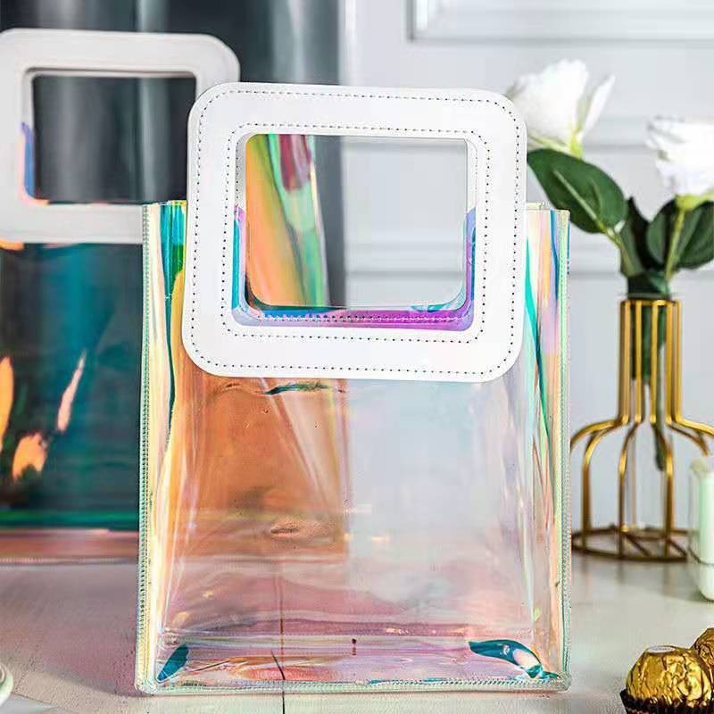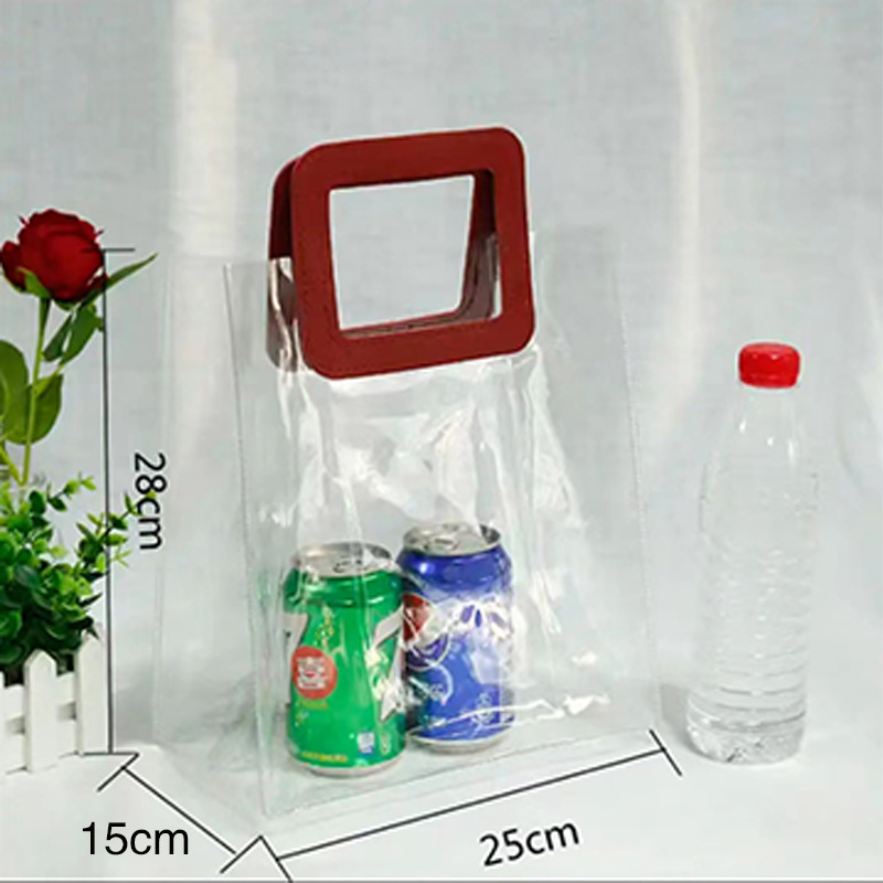 In 손 선물 토트 백 투명 가방 플라스틱 핸드백 선물 가방 의류 포장 손 선물 가방 PVC 가방