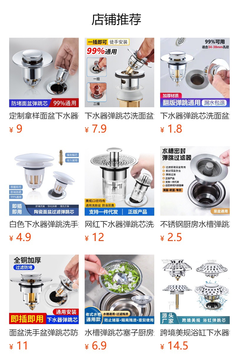 분지 바운스 코어 세척 분지 누출 플러그 필터 탈취 아티팩트 유니버설 액세서리 국경 간스토어 가기