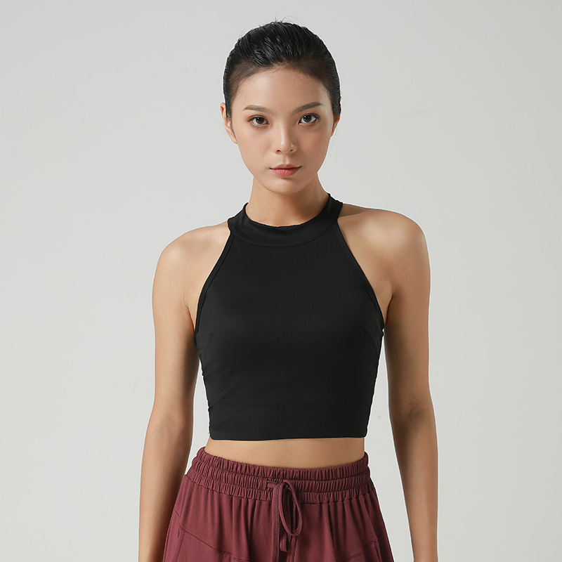 고정 컵 유방 쿠션 민소매 요가 의류 스포츠 피트니스 속옷 요가 뷰티 백 브라와 교수형 목 스포츠 조끼스토어 가기