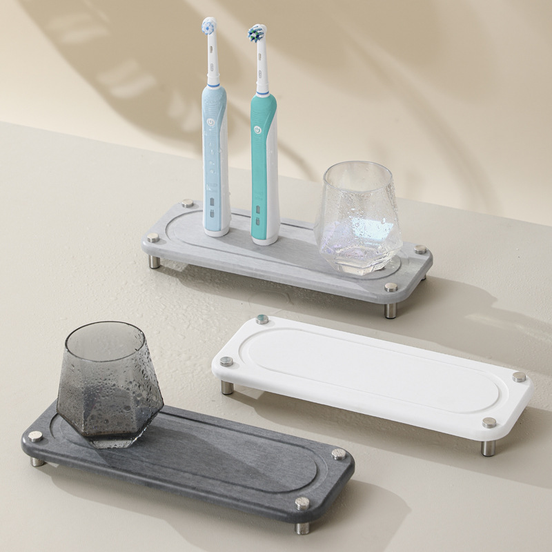 梯形双层硅藻泥置物杯架洗手台面吸水硅藻泥土垫家用漱口水杯垫架