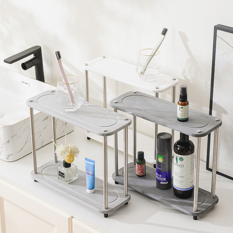 硅藻泥卫生间双层收纳架桌面化妆品香水置物架硅藻土吸水速干架子