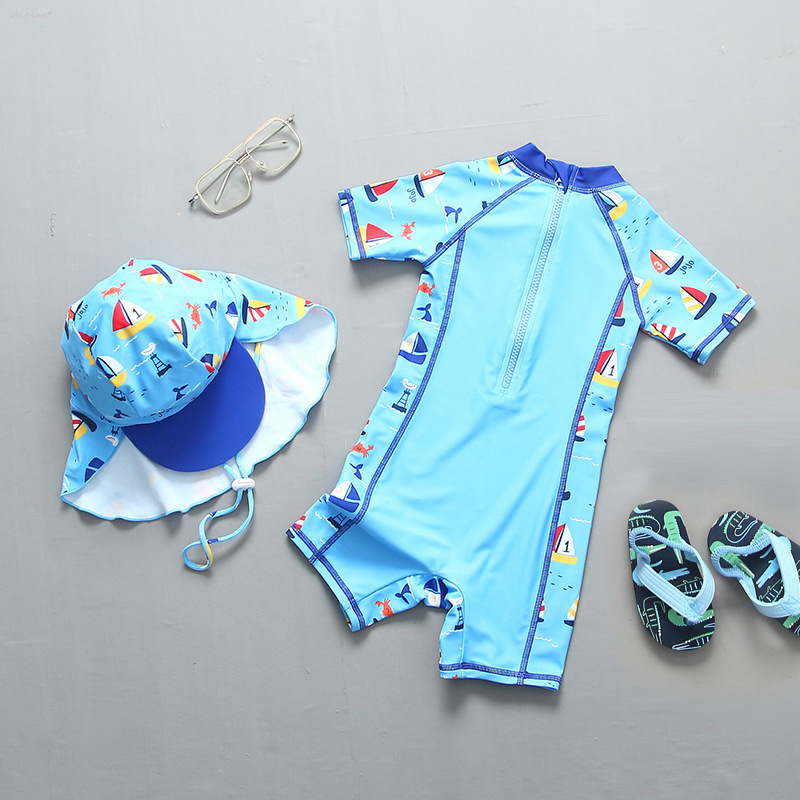 한국 한 팬 어린이 수영복 남아 아기 수영복 바지 세트 아기 원피스 어린이 태양 보호 따뜻한 서퍼 옷