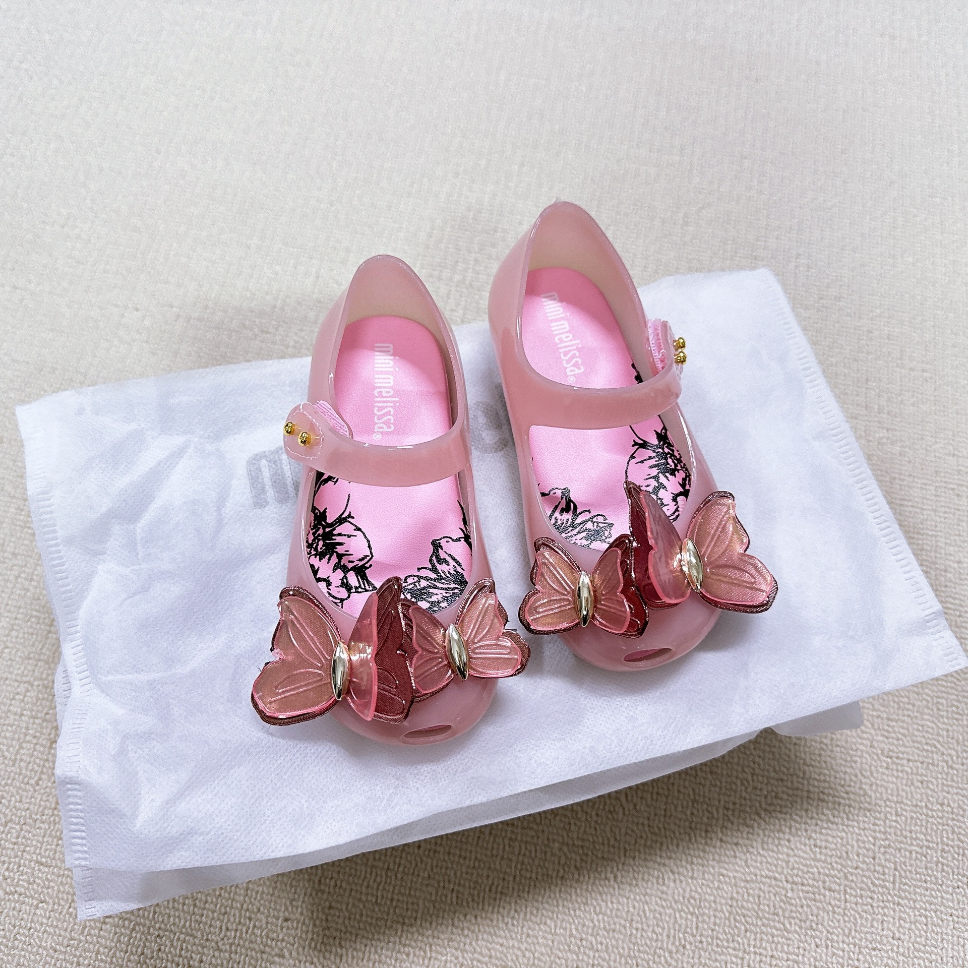 멜리사 향기로운 공주 초등학교 핑크 메탈릭 스팽글 스테레오 나비 라인 석 젤리 여아 비치 샌들