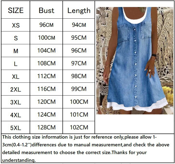 2023 유럽과 미국 크로스 국경 아마존 소원 패션 디지털 가짜 2 피스 데님 인쇄 레저 원피스 최적화 된 버전