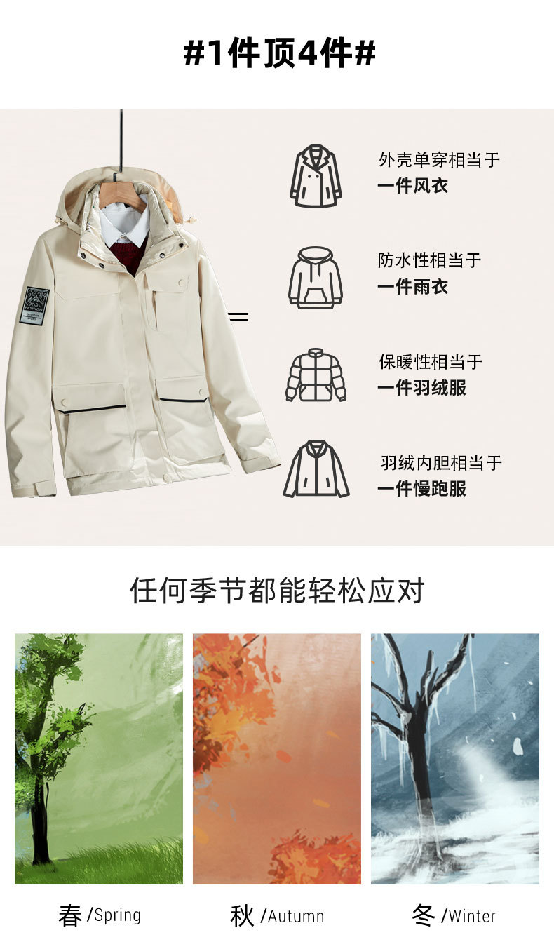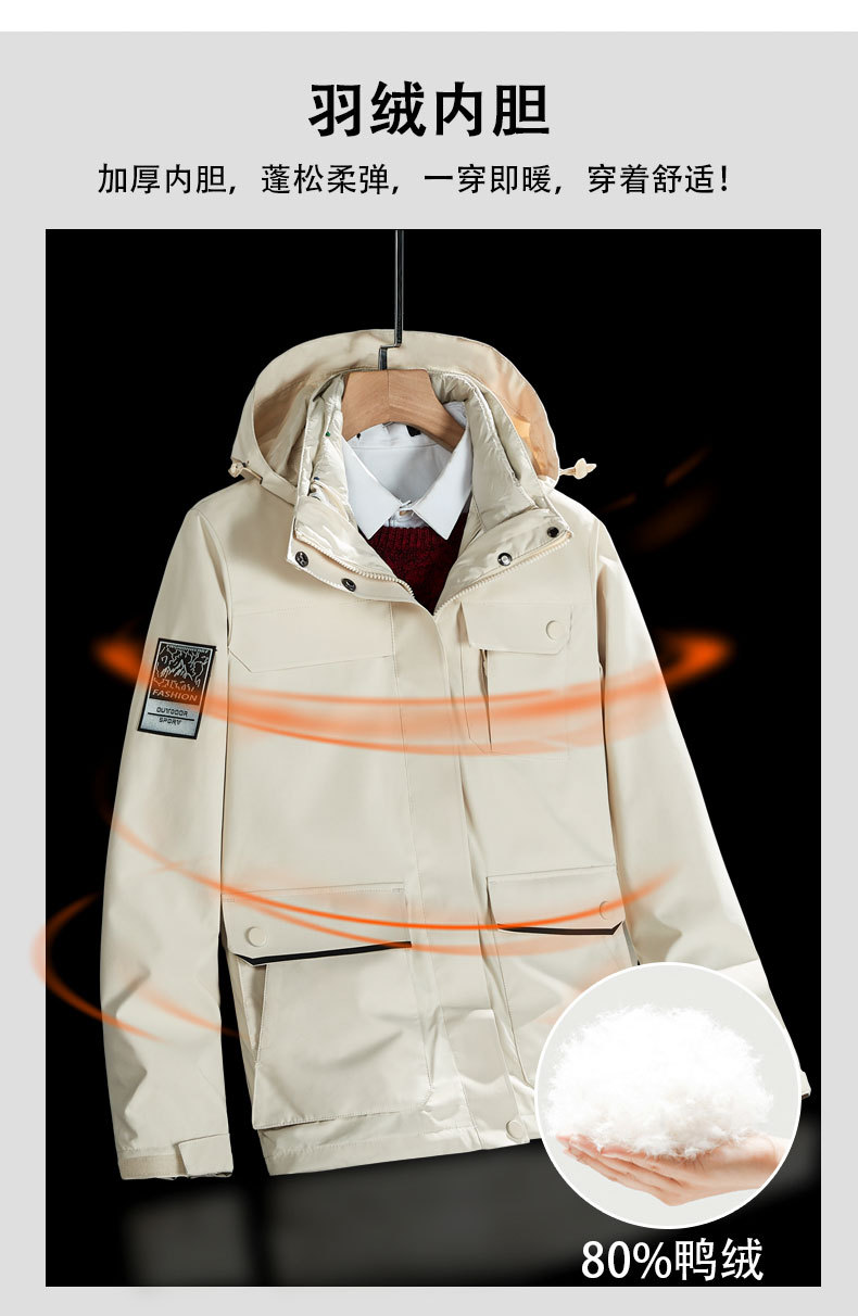 남성용 아웃도어 재킷, 여성용 쓰리인원 다운 등산 재킷, 방풍 및 발수 비즈니스 작업복 스키 재킷스토어 가기