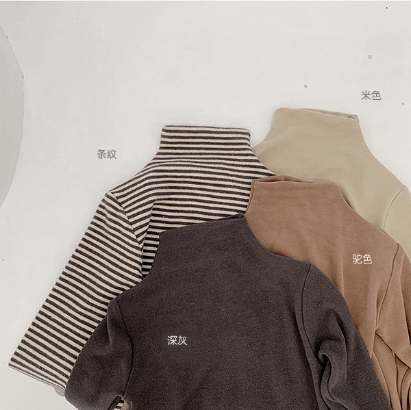 부드러운 왁스 같은 피부 친화적 인 자기 유지! 2023 가을과 겨울 한국 소년 소녀 샌딩 스트라이프 세미 하이 칼라 단색 티셔츠베이스 셔츠스토어 가기