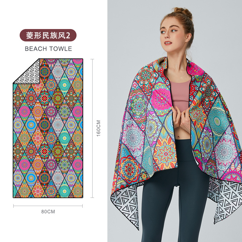 크로스보더 양면 벨벳 흡수성 속건 비치 타월 극세사 요가 스포츠 타월 도매 수영 비치 타월스토어 가기
