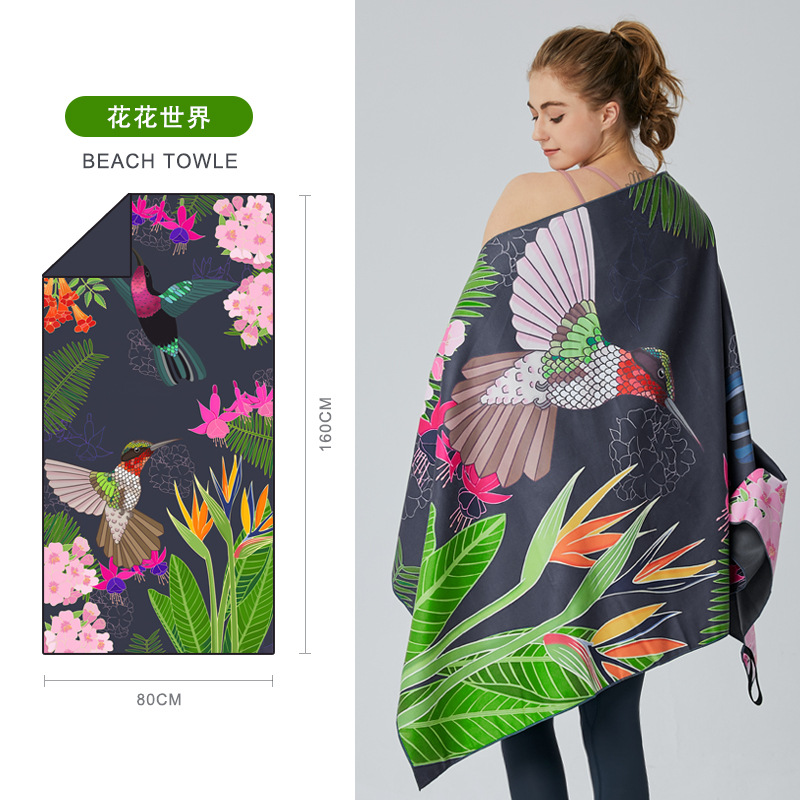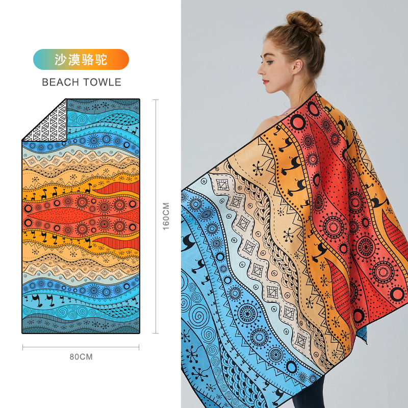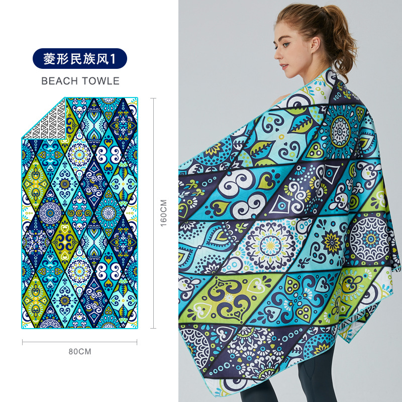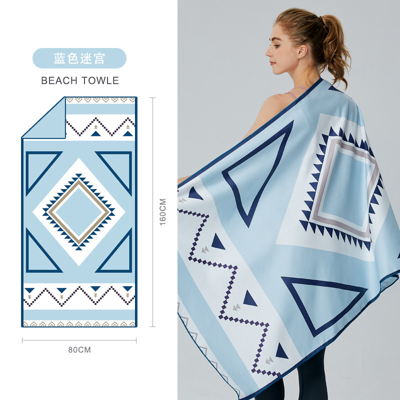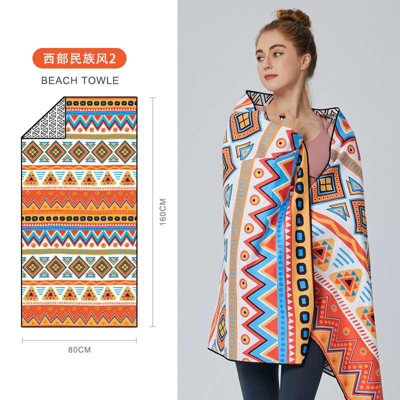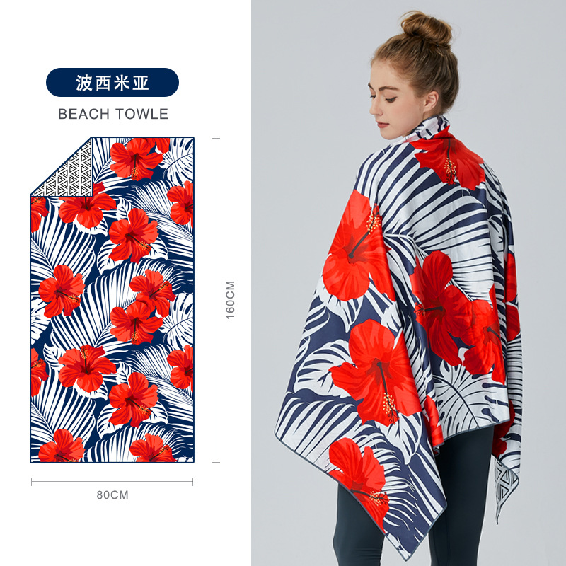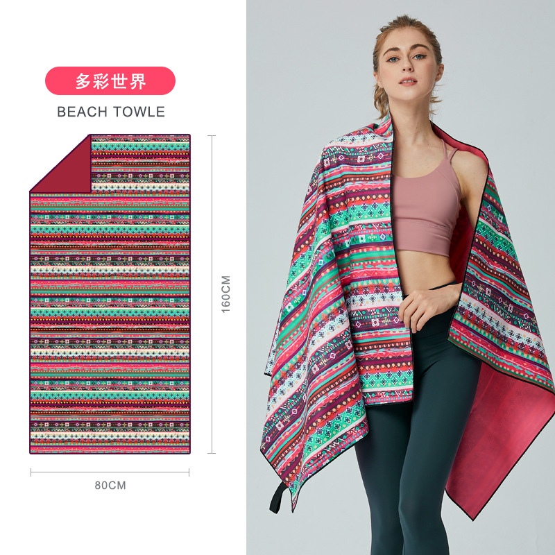 크로스보더 양면 벨벳 흡수성 속건 비치 타월 극세사 요가 스포츠 타월 도매 수영 비치 타월