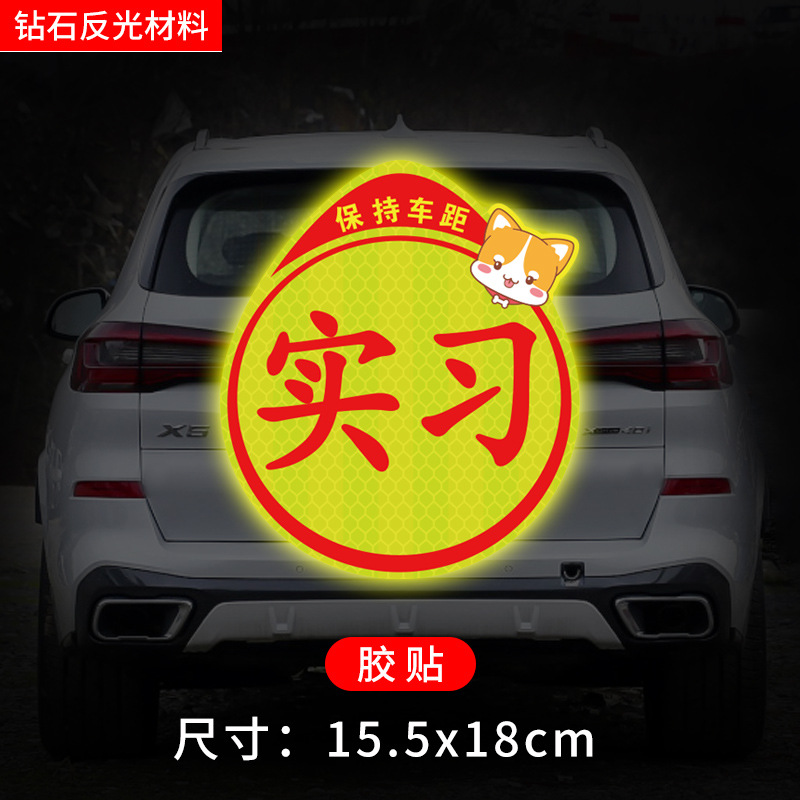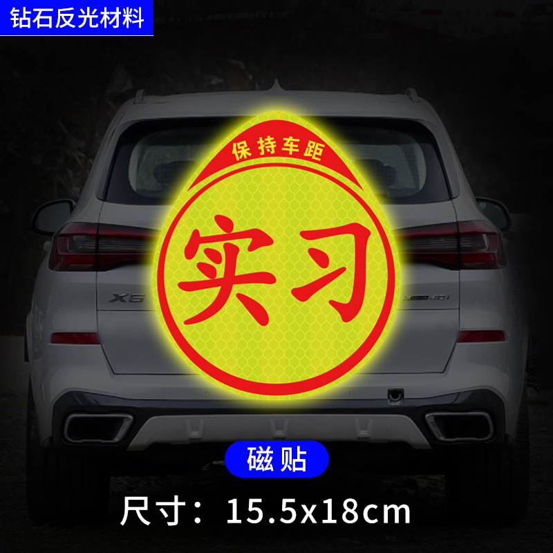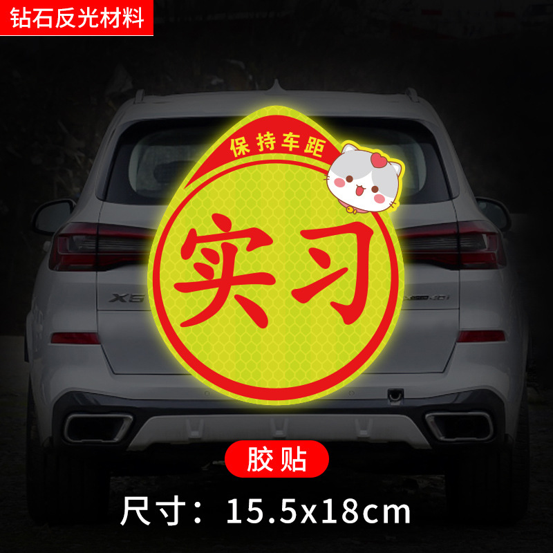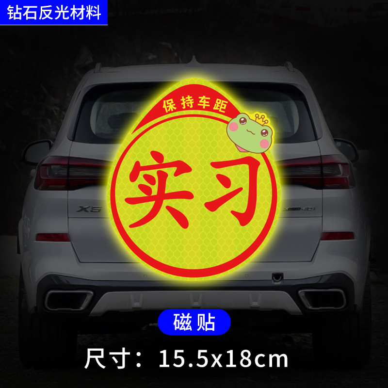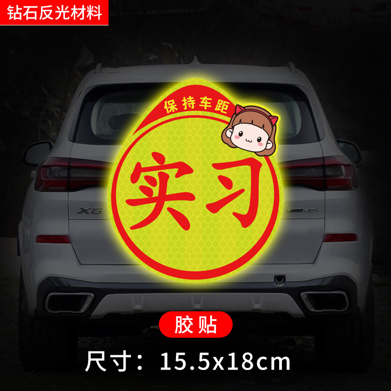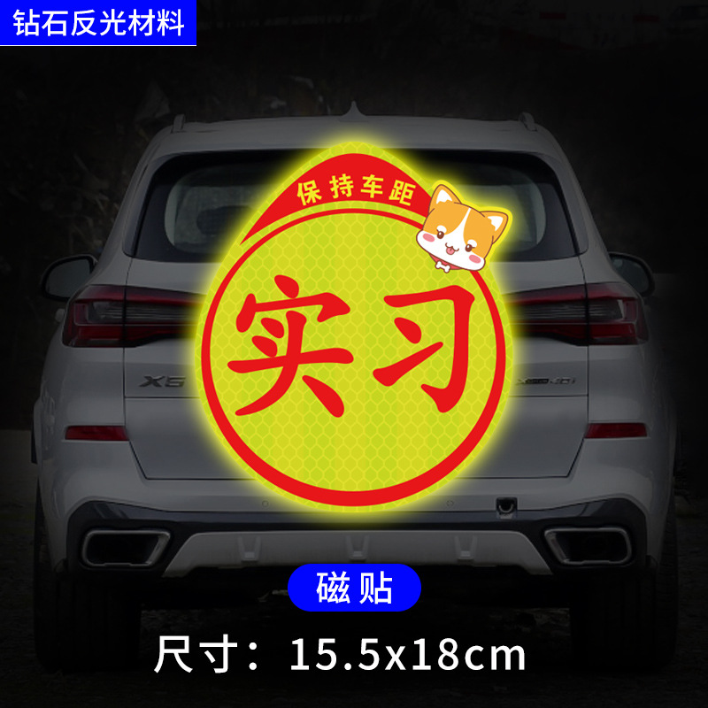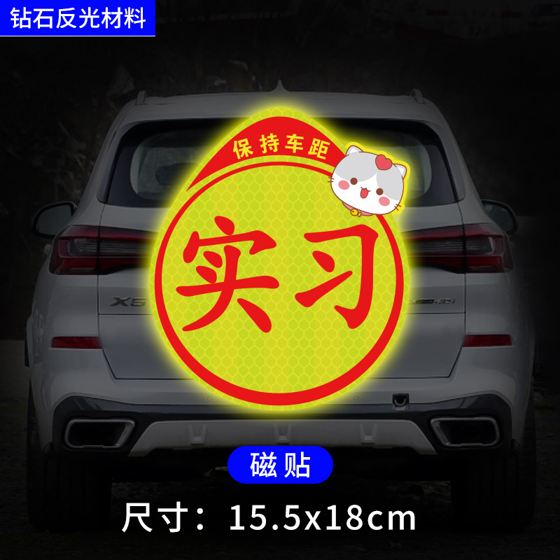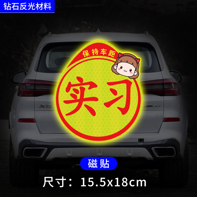 인턴쉽 자동차 스티커 마그네틱 스티커 초보자 자동차 스티커 여성 운전자를위한 창조적 인 반사 만화 유니폼 스티커