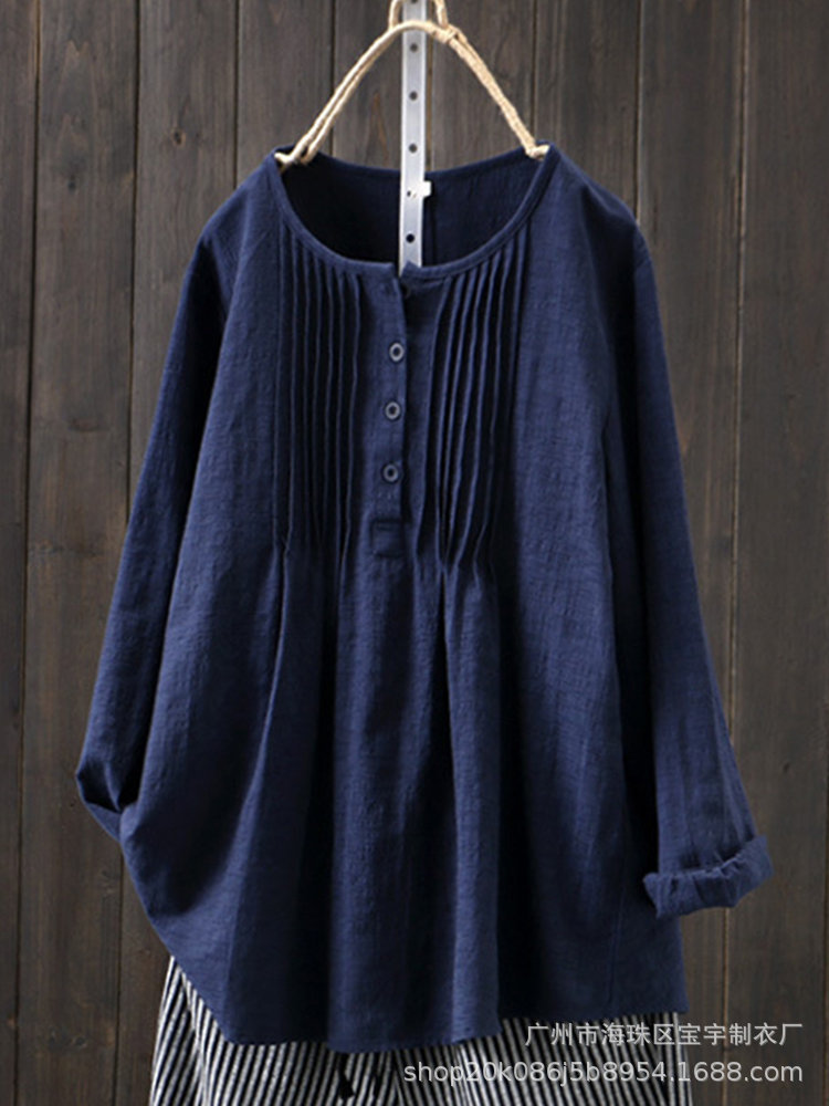 2019 셔츠 여성 가을 ​​면 및 린넨 새로운 핫 세일 솔리드 컬러 다목적 긴 소매 N 여성 셔츠