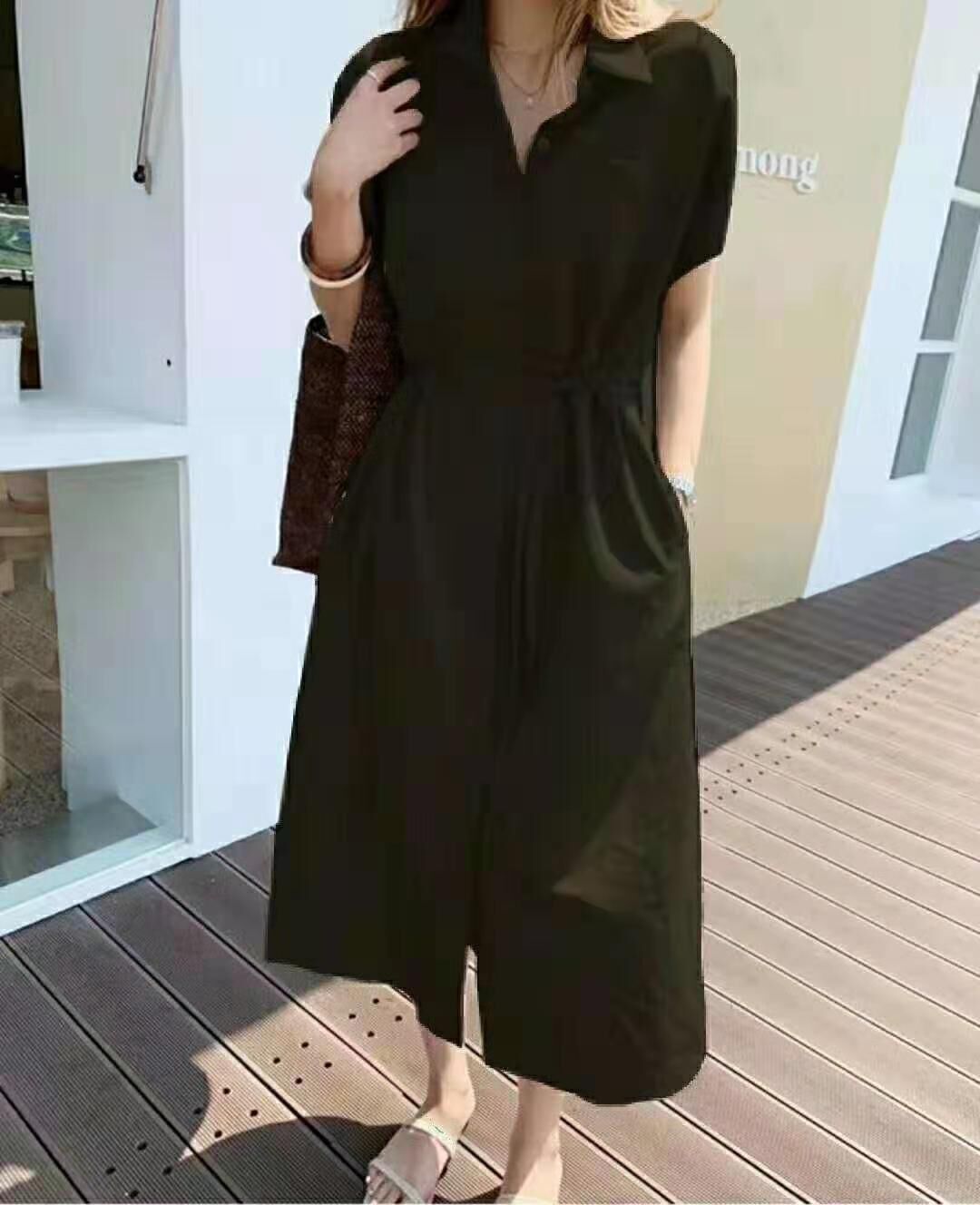 단색 한국 스타일 2023 여름 새로운 느슨한 싱글 브레스트 레이스 업 벨트 린넨 롱 원피스 셔츠스토어 가기