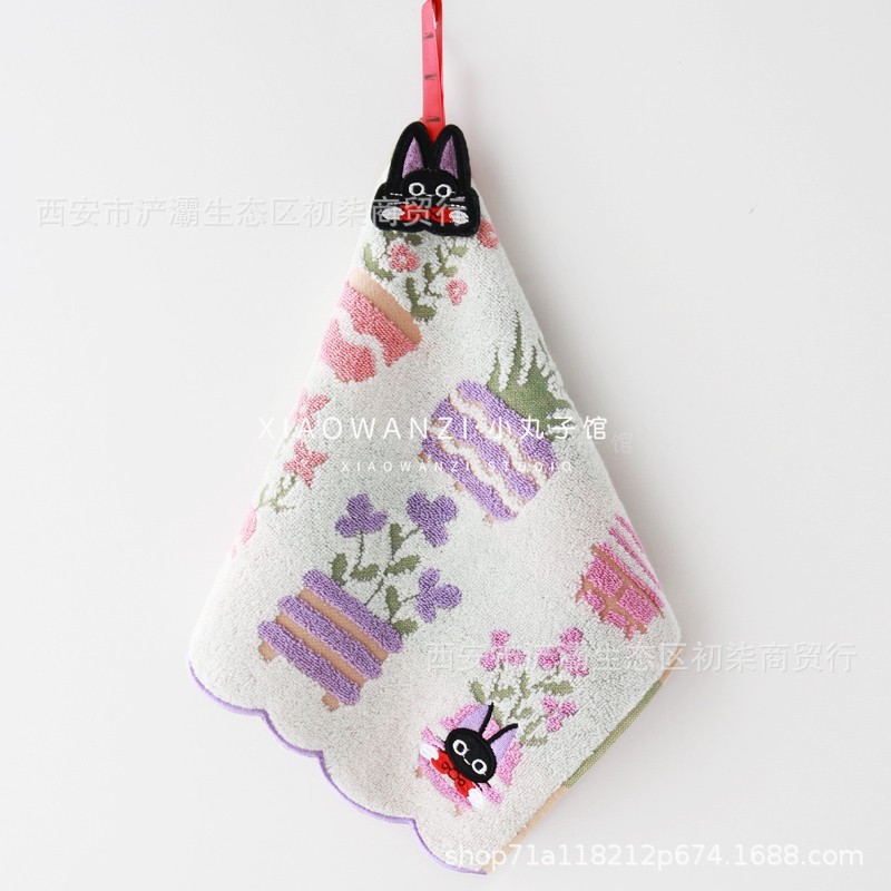 상점 축하 피드백 수출 대외 무역 면 천 스티커 끈 고양이 검은 고양이 매달려 작은 사각형 수건 작은 수건 손수건 배치
