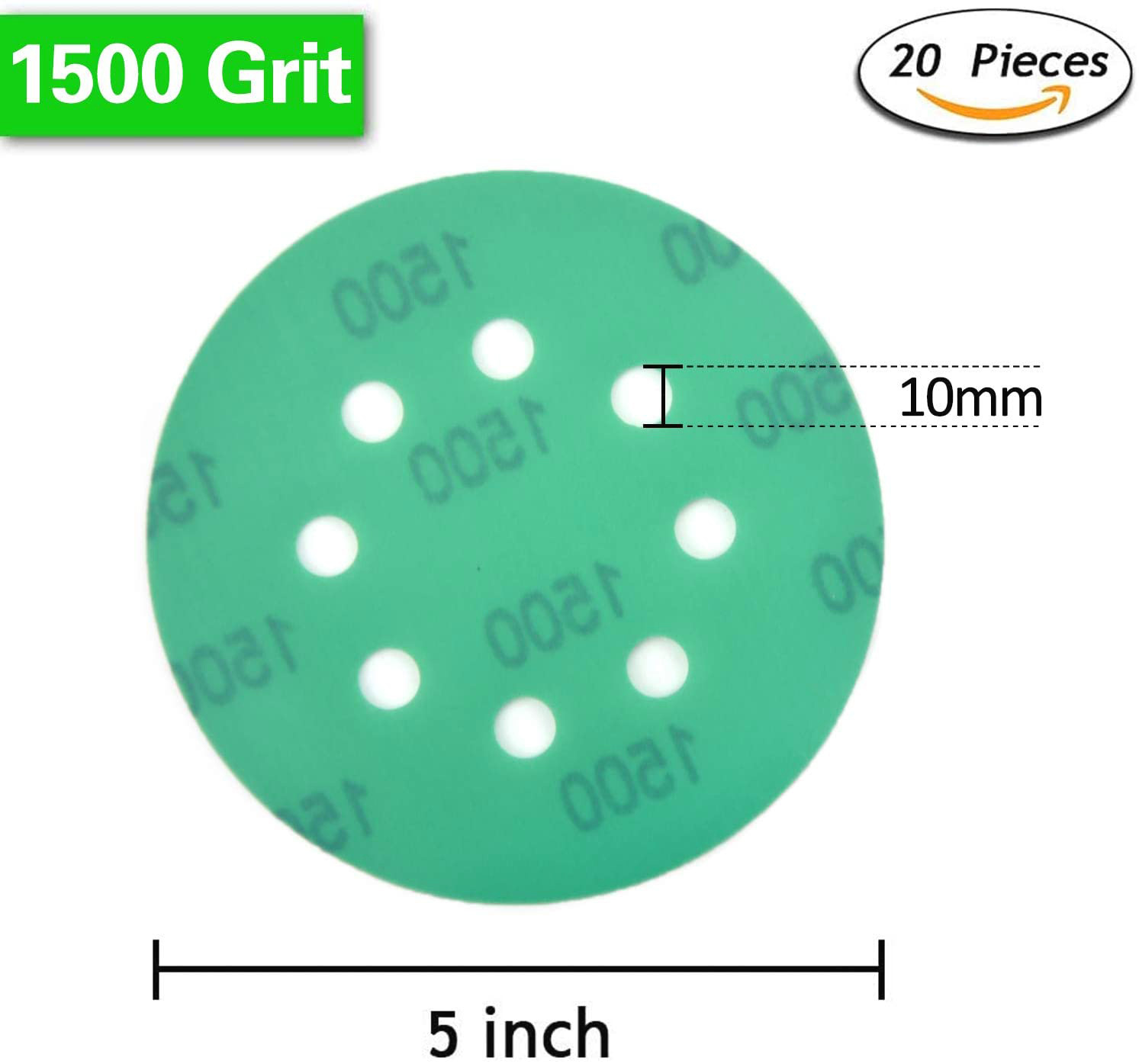 绿色聚酯薄膜砂纸20PCS5英寸8孔