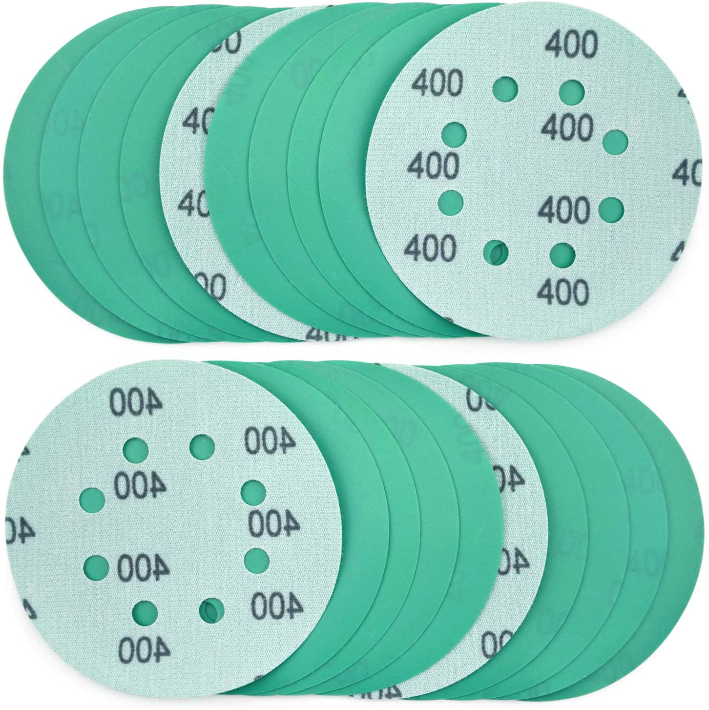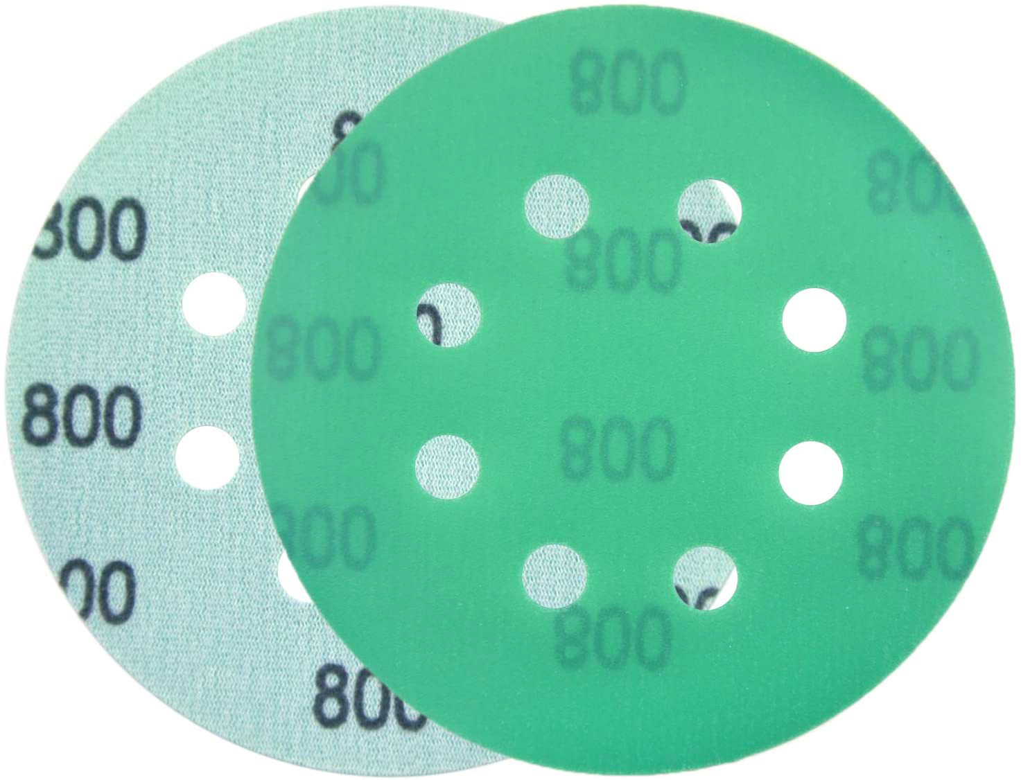 5인치 8홀 폴리에스터 필름 그린 샌드 20PS 세트 건식 및 습식 겸용 물사포 벨벳 뒷면 원형 사포 연마 사포