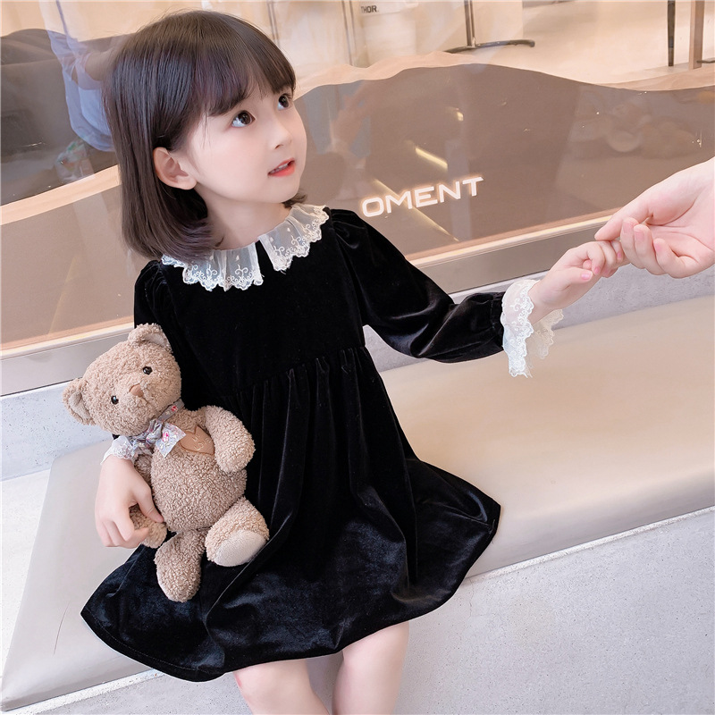어린이 인터넷 유행 원피스 서양 스타일 가을 소녀 벨벳 원피스 2021 새로운 아기 소녀 공주 원피스 봄과 가을