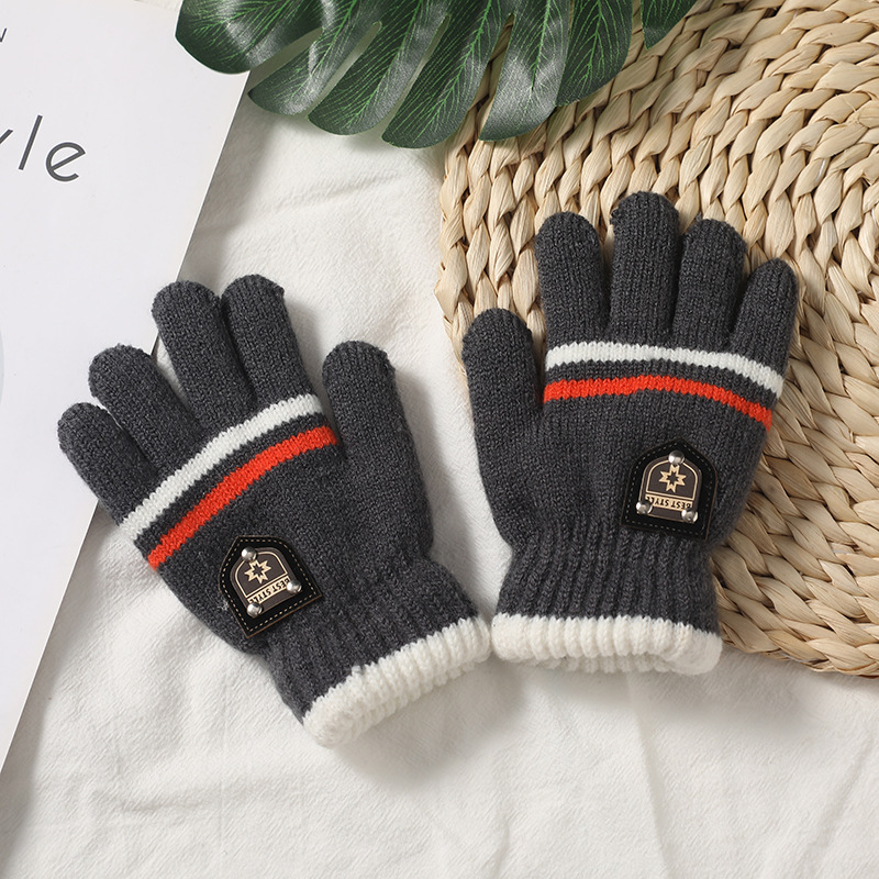 겨울 어린이 손가락 장갑 2 층 내부 안감 머리 방한 보온 여행 및 놀이에 필요한 니트 장갑스토어 가기