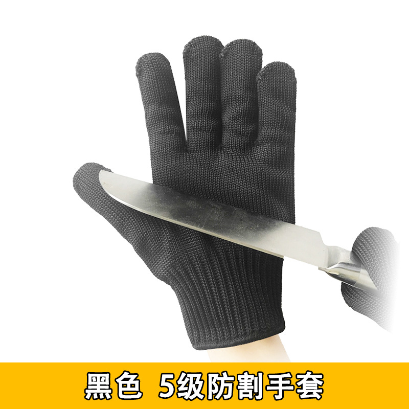 재고 두꺼운 5 등급 스틸 와이어 절단 방지 장갑 절단 방지 내마모성 블랙 노동 보호 스크래치 방지 칼 장갑