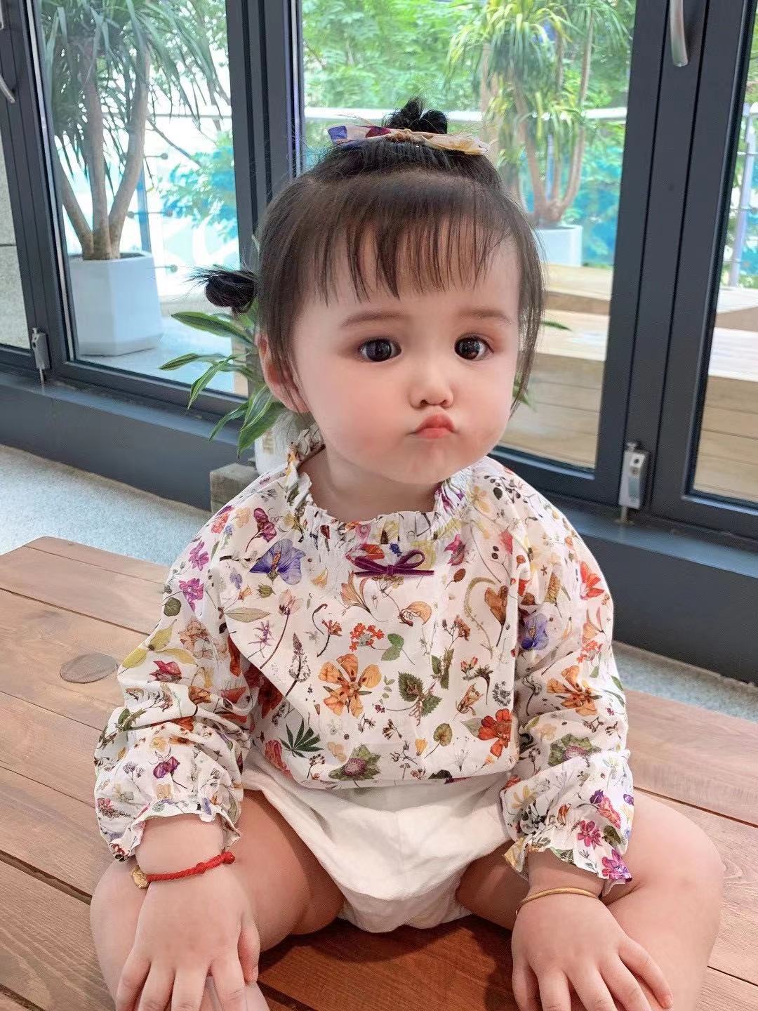 통관 가을 새 여자 꽃 긴 소매 셔츠 하이 퀄리티 빗질 면 디지털 프린트 셔츠