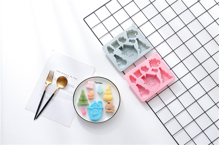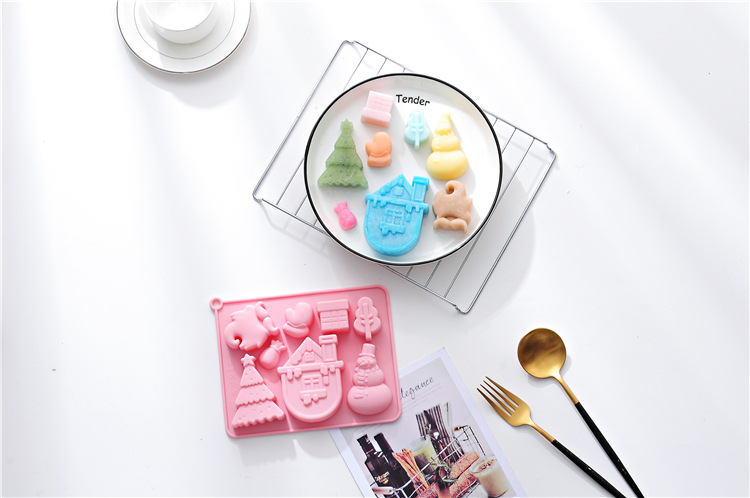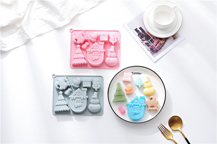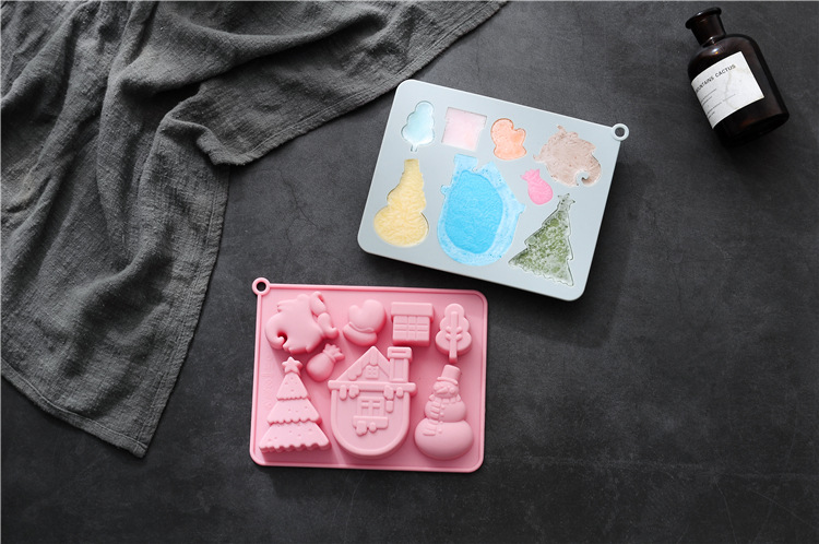 재고 크리스마스 휴일 테마 실리콘 몰드 케이크 금형 아이스 큐브 수제 비누 식품 보충 초콜릿 베이킹 금형스토어 가기