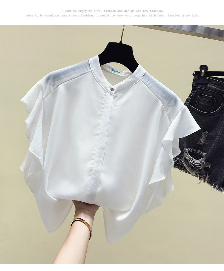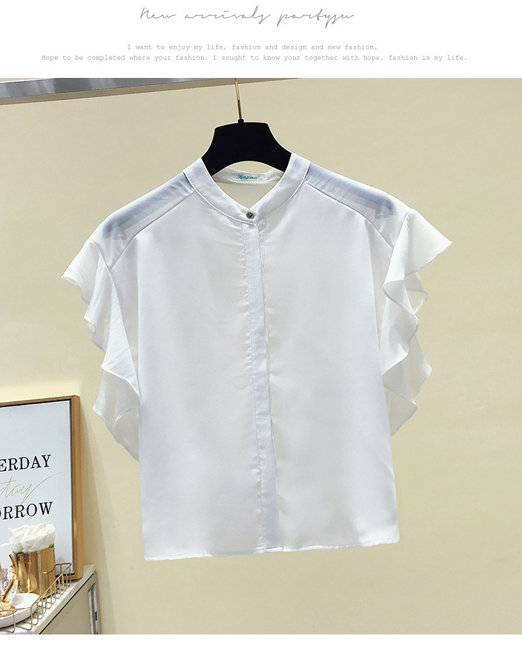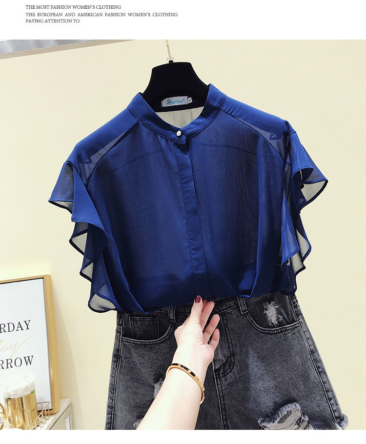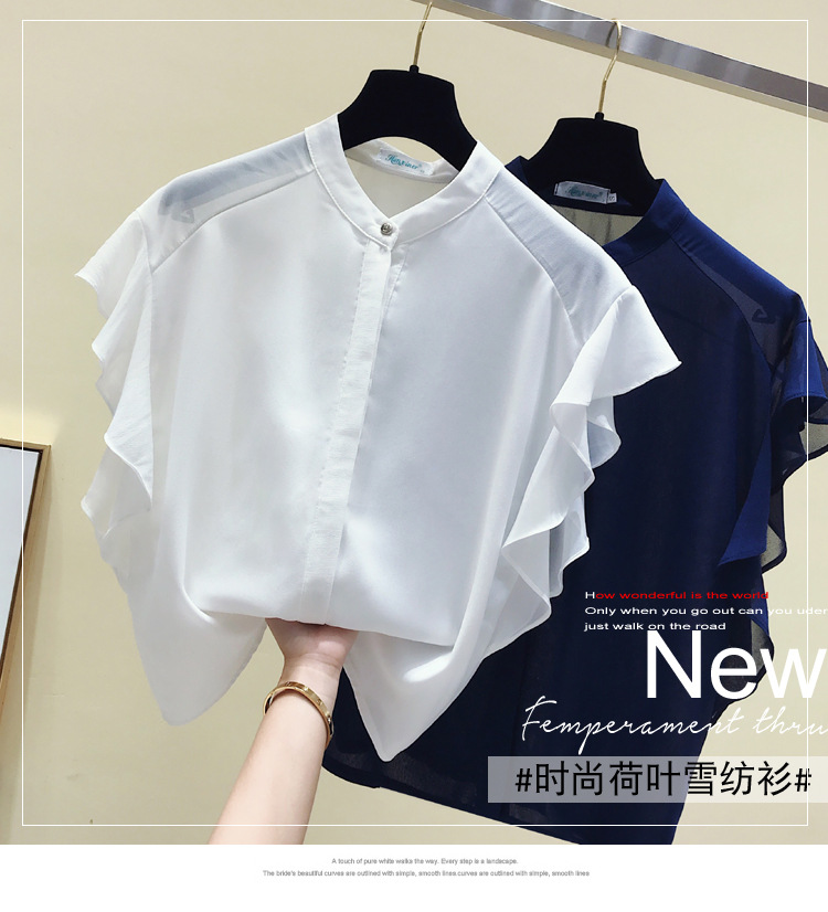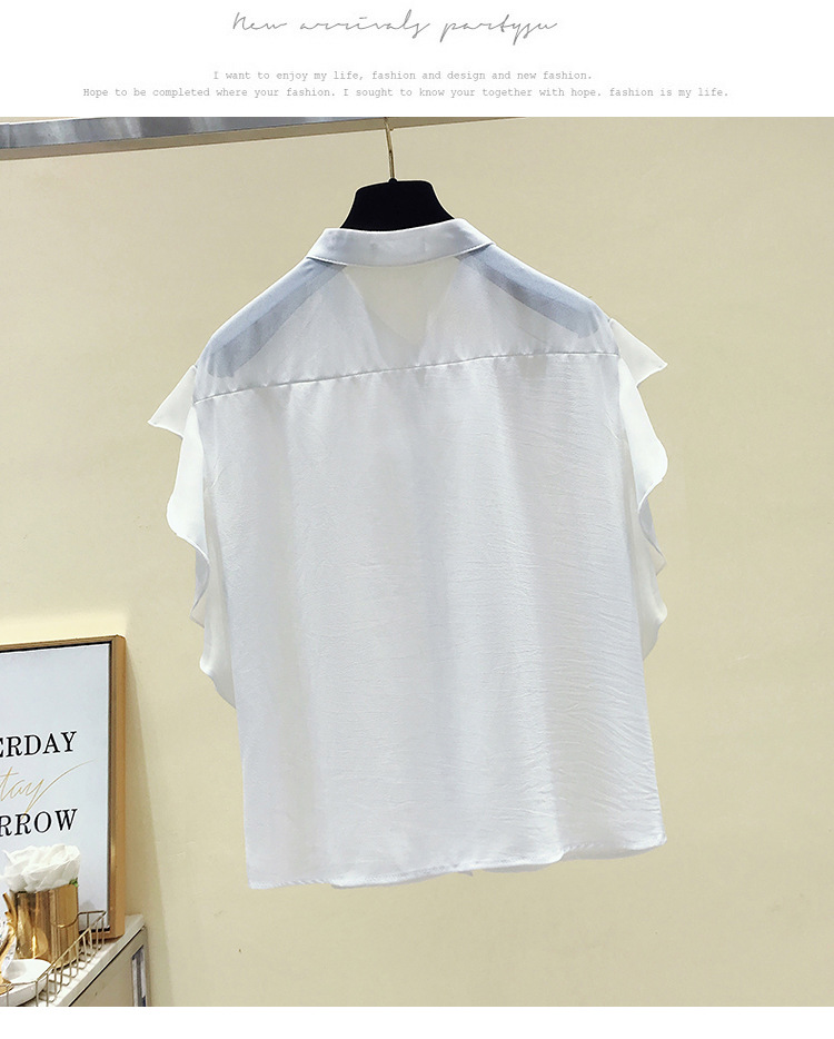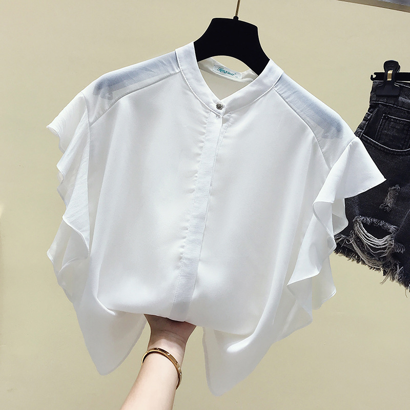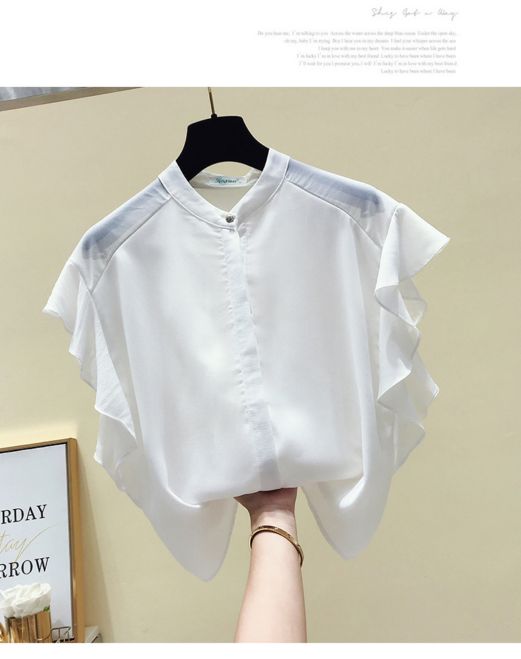 여름 일본과 한국의 새로운 크로셰 중공 반팔 레이스 셔츠, 쉬폰 셔츠, 플라잉 슬리브 탑