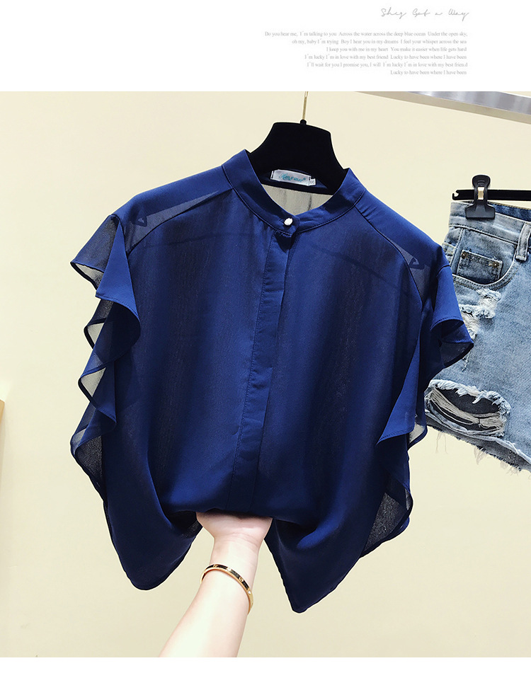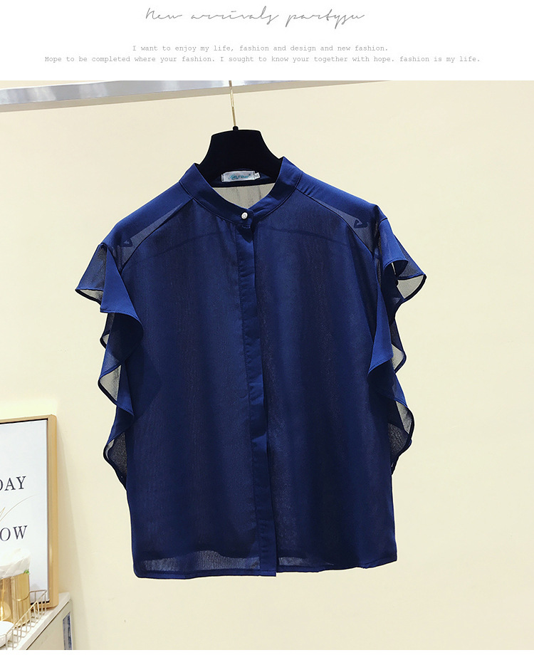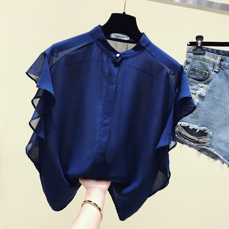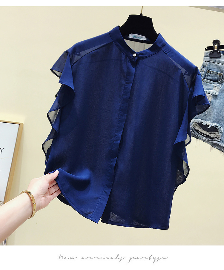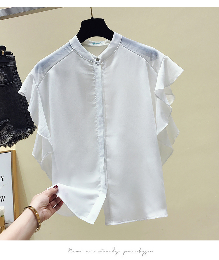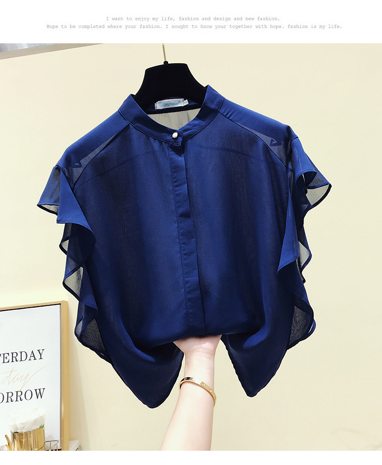 여름 일본과 한국의 새로운 크로셰 중공 반팔 레이스 셔츠, 쉬폰 셔츠, 플라잉 슬리브 탑