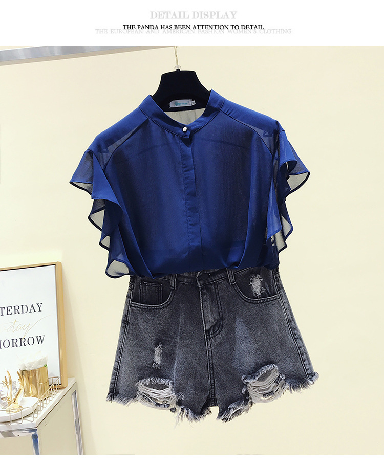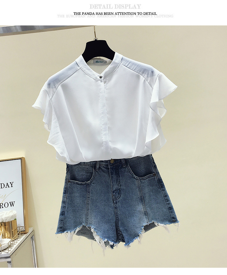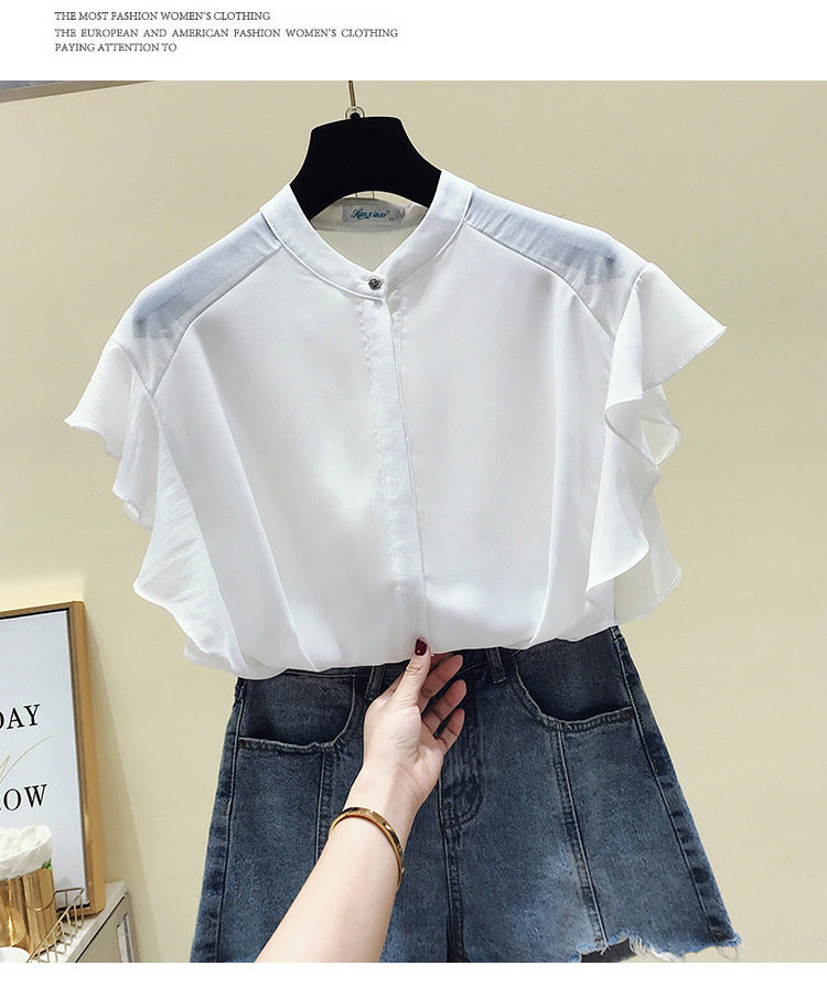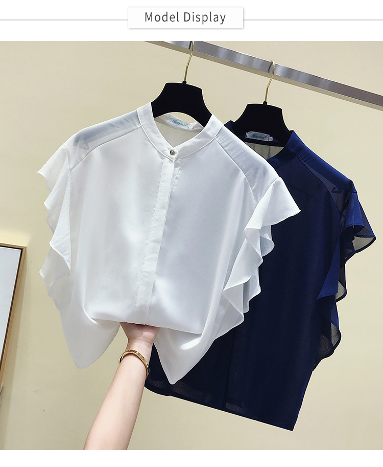 여름 일본과 한국의 새로운 크로셰 중공 반팔 레이스 셔츠, 쉬폰 셔츠, 플라잉 슬리브 탑스토어 가기