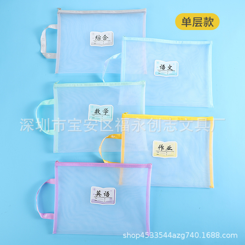 새로운 A4 나일론 학생 과목 파일 가방 과목 분류 가방 더블 투명 지퍼 보관 가방스토어 가기