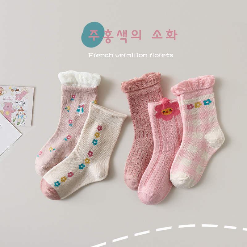 가을과 겨울 어린이 양말 보라색 레이스 작은 꽃 소녀 양말 튜브 양말 캐주얼 일본 어린이 양말 제조 업체 도매