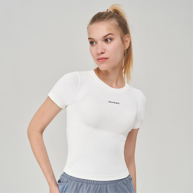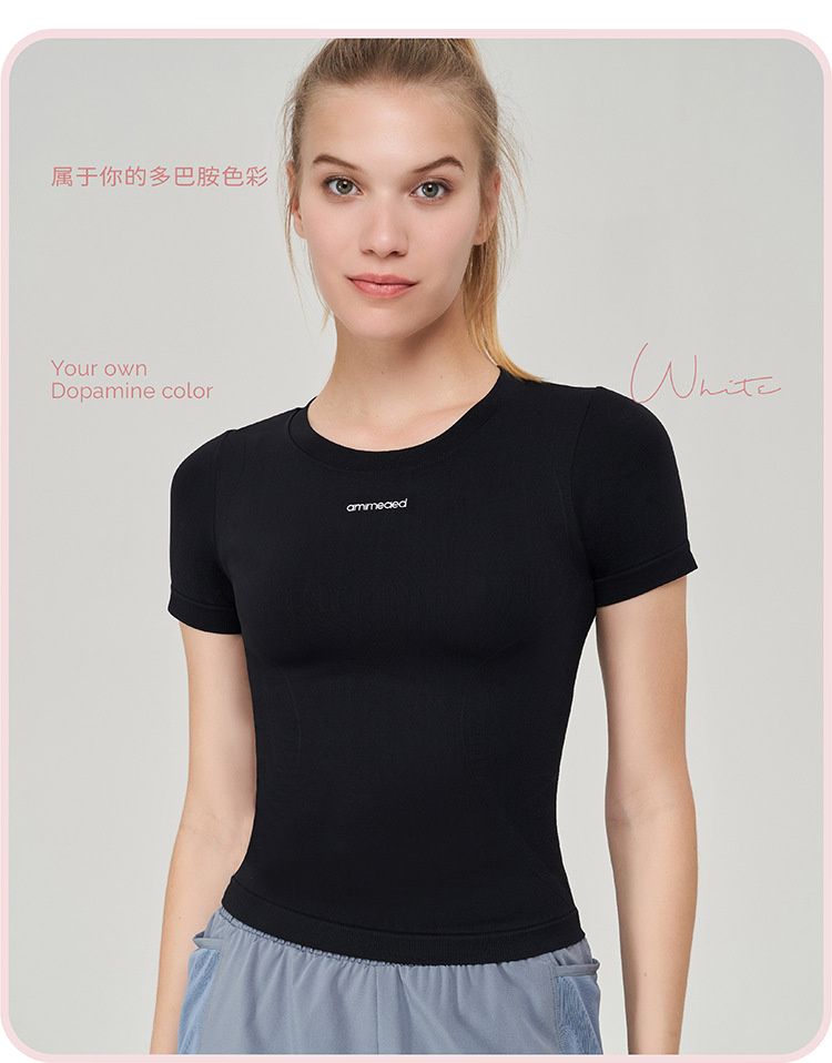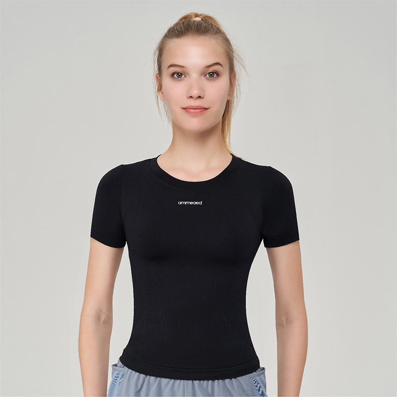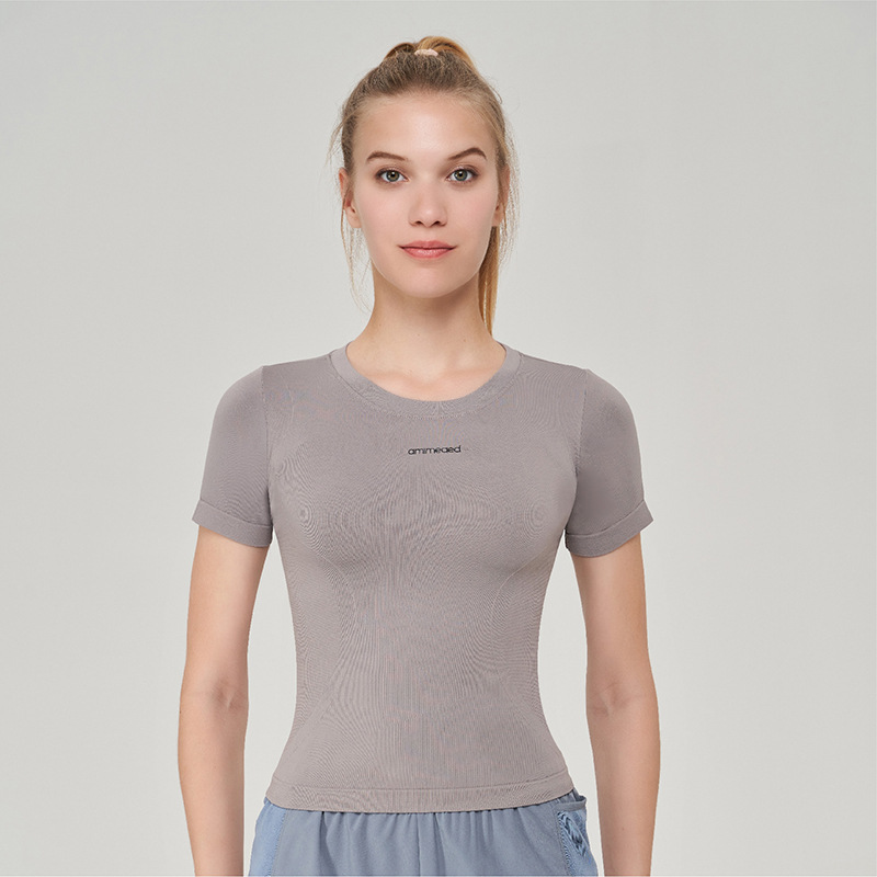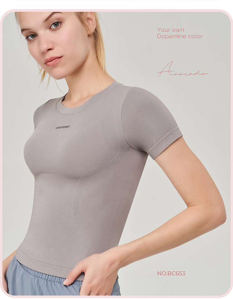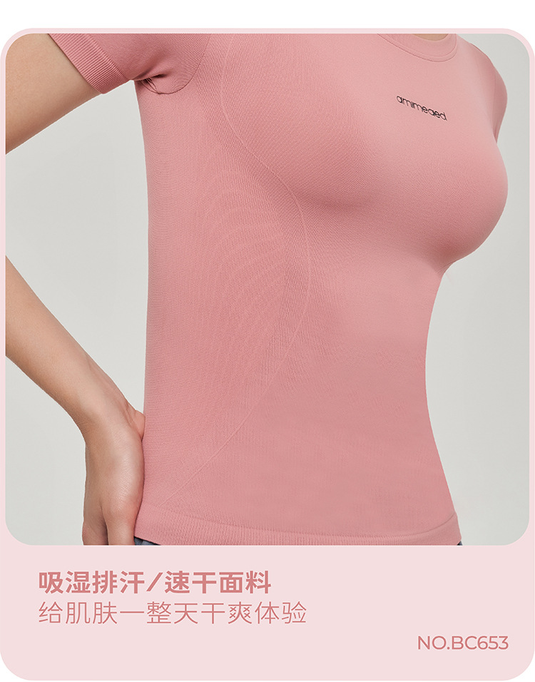 스포츠 반팔 티셔츠 여성의 통기성 땀 흡수 높은 스트레치 빠른 건조 필라테스 슬림 핏 타이트 피트니스 요가 탑